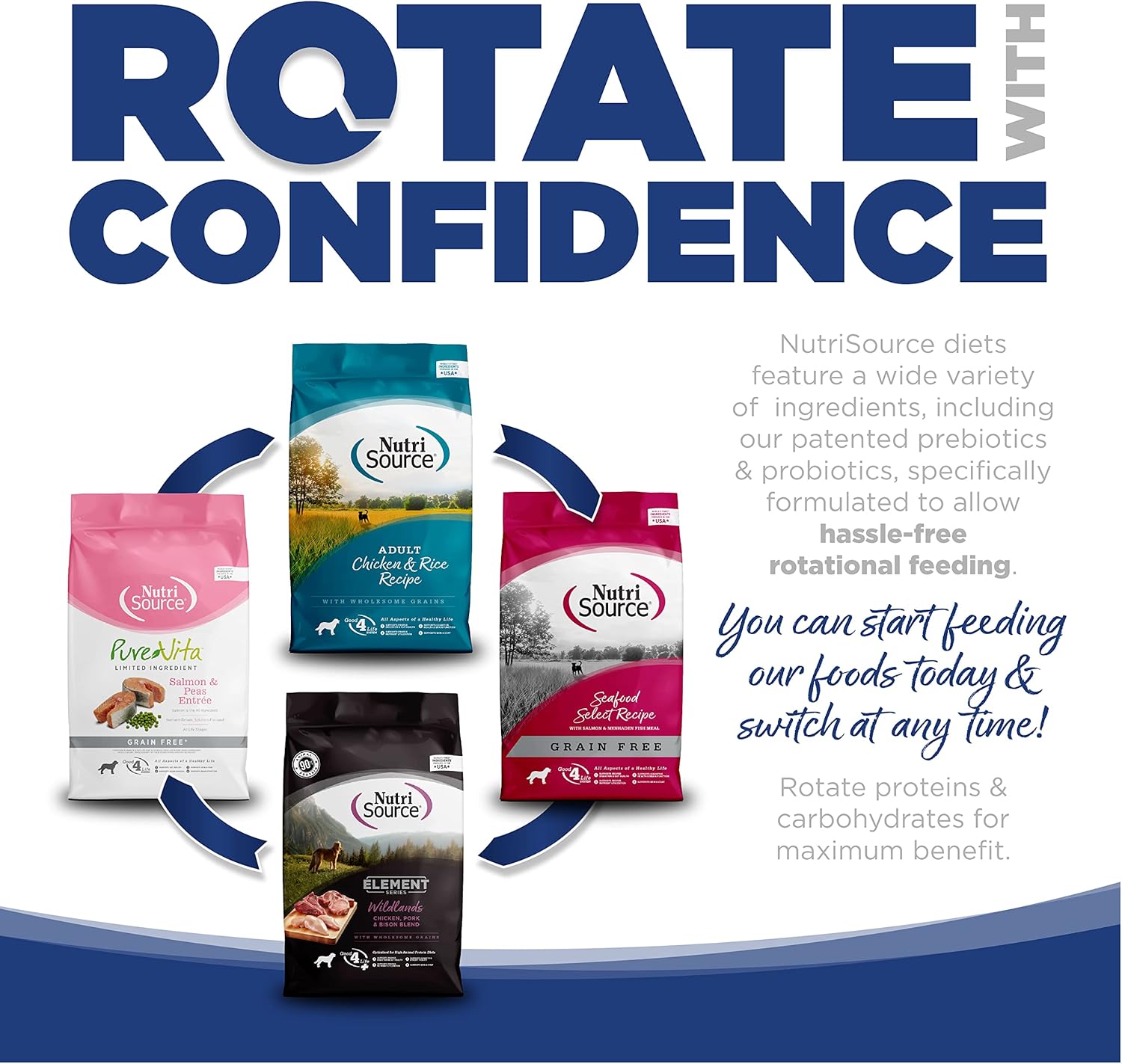 - As a member of our grain inclusive series, NutriSource Trout and Rice Dry Dog Food is formulated to meet AAFCO guidelines for all lifestages