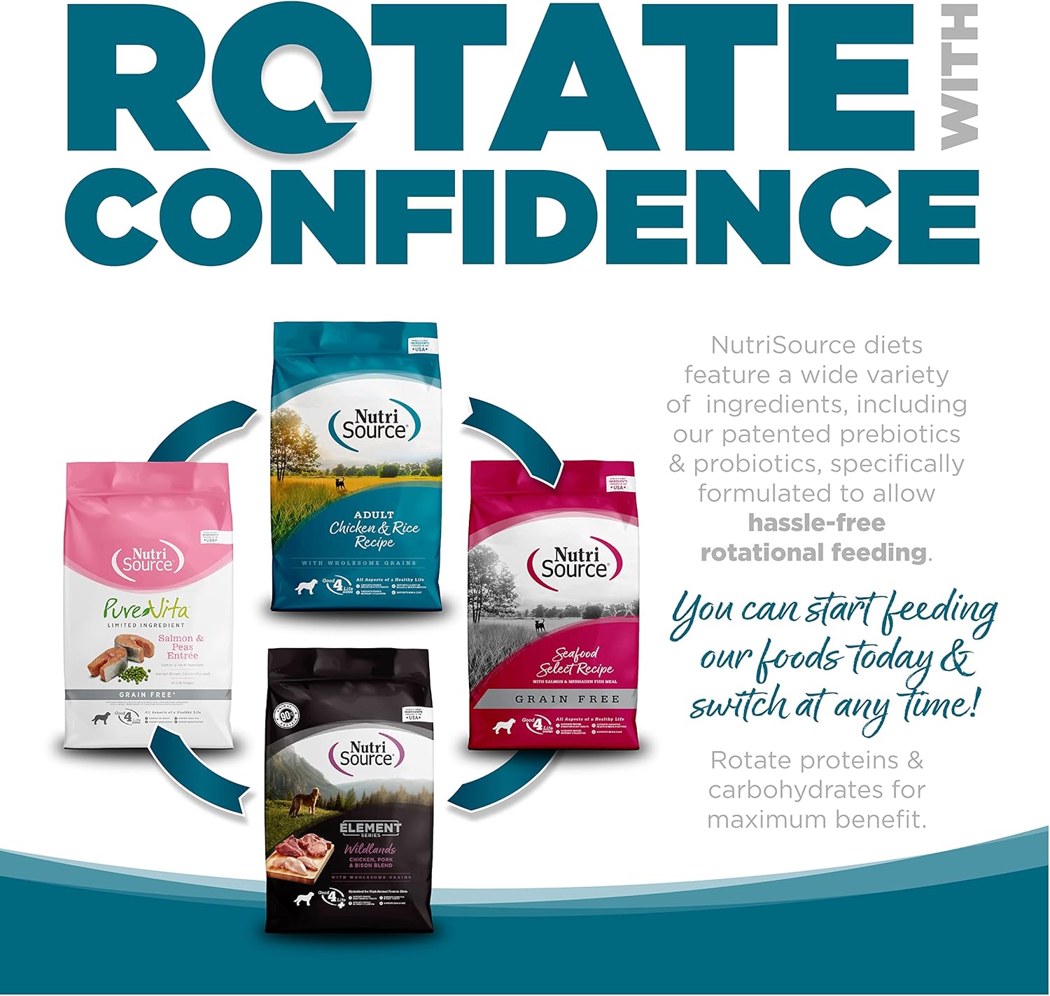 - As a member of our grain inclusive series, NutriSource Chicken and Rice Dry Dog Food is formulated to meet AAFCO guidelines for all lifestages
