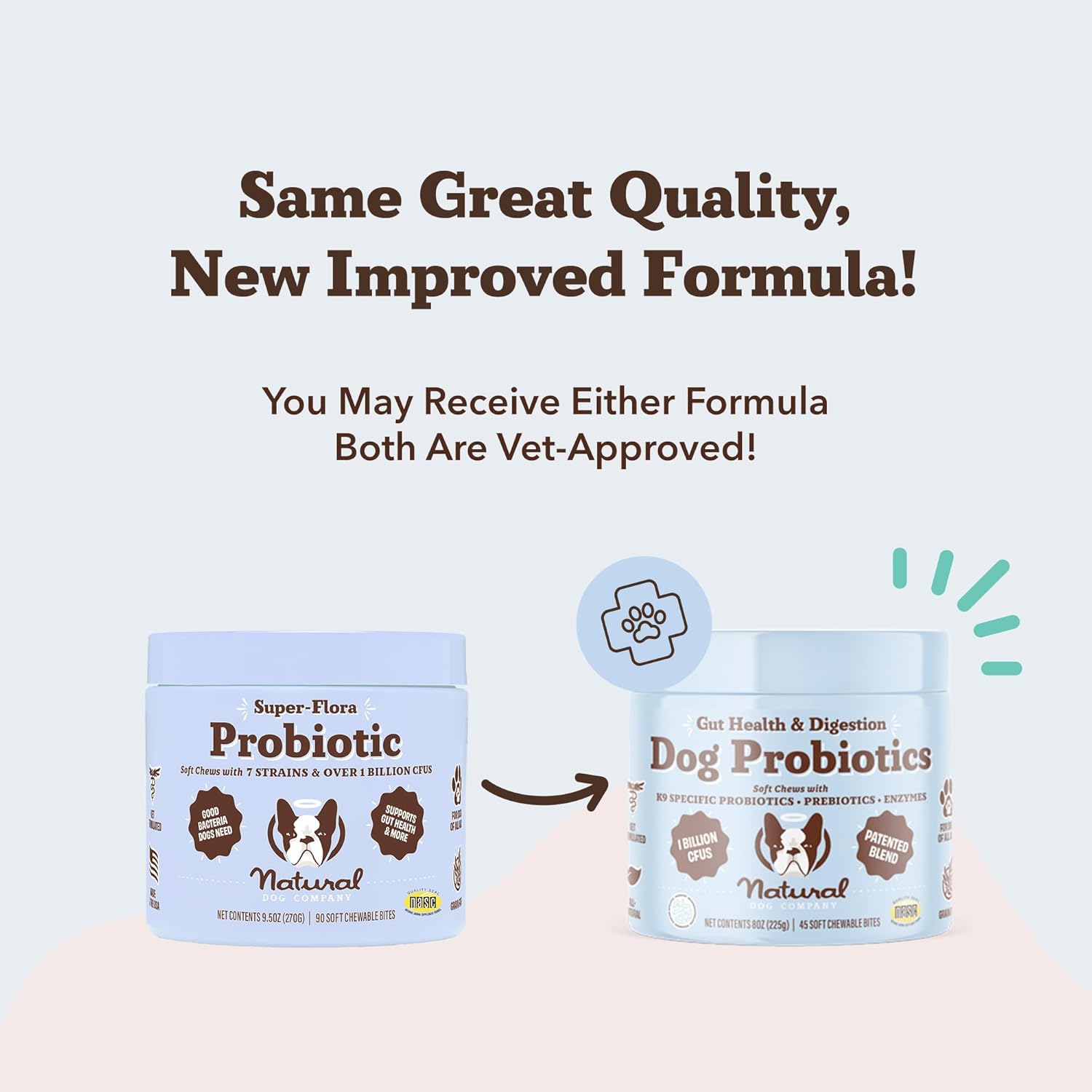 Natural Dog Company Gut Health & Probiotic Chews for Dogs (45 Ct), Prebiotics, Digestive Enzymes & Canine Specific Probiotics for Digestion, Gas, Loose Stool & Immune System Support, 1 Chew Daily