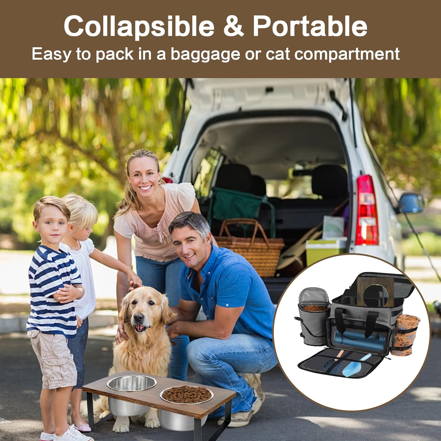 - EASY TO USE & CLEAN :2 Food grade stainless steel dog bowls are rust-proof and removable. dishwasher and microwave safe. Natural Odor-Free Wood dog bowl stand is smooth surface and waterproof