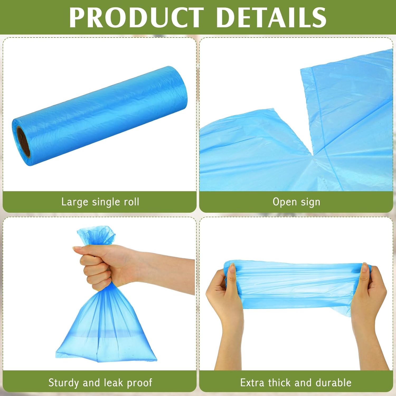 - Quality Material: these dog waste bags are made of HDPE material, durable and reliable to use, good bearing capacity and leak proof performance, our bags are packed in sturdy, easy to use boxed rolls, you don't need to pick up your pet's feces directly by hand, keep your hand clean