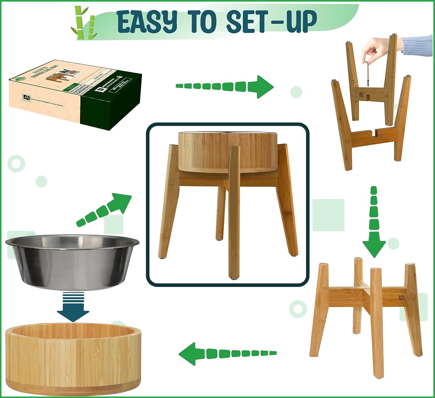 - Hygienic for Both Wet and Dry Dog Food – Crafted from kitchen-grade natural bamboo and stainless steel materials, this dog food feeder is ideal for your pet’s well-being. The steel bowl ensures hassle-free washing and drying.