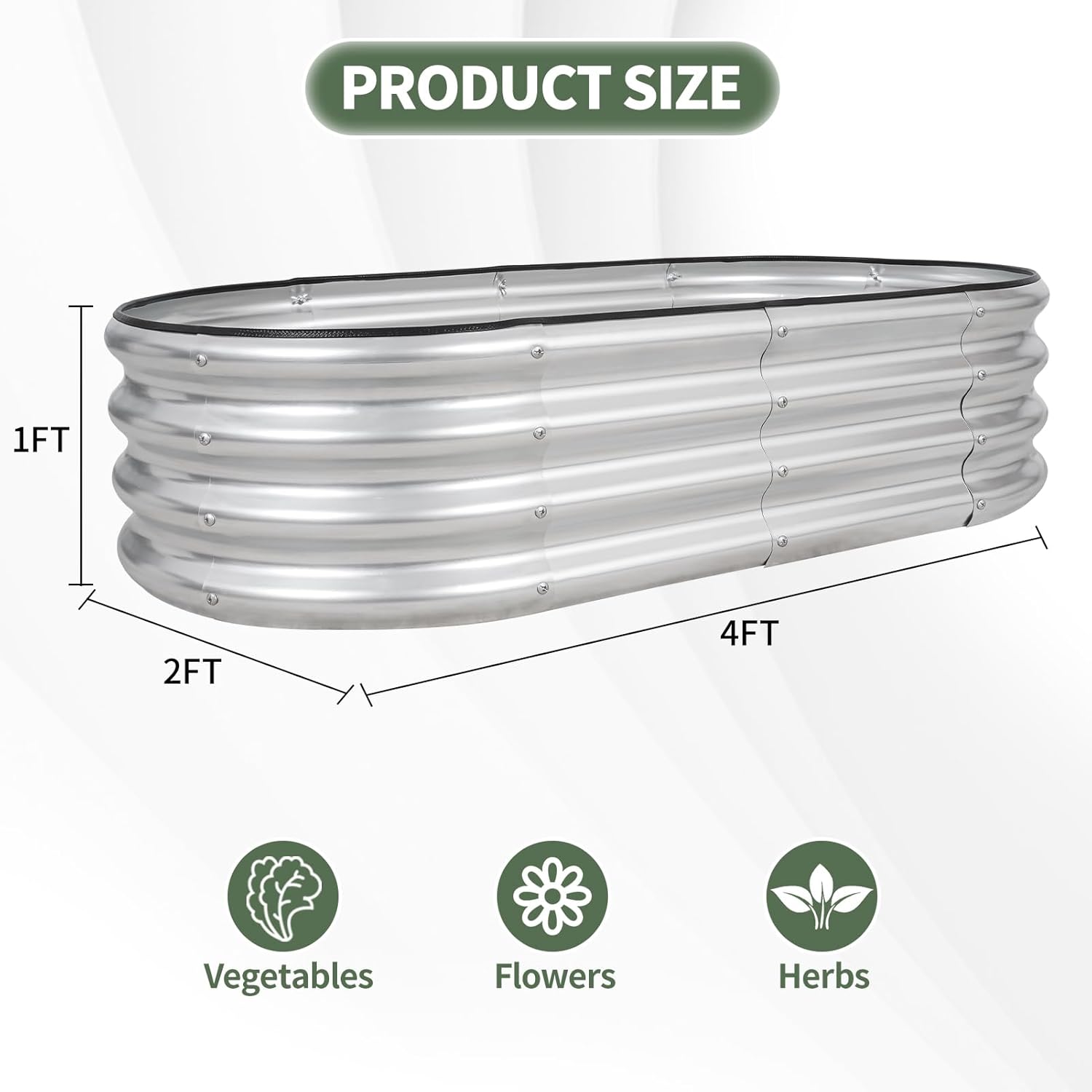 - 【High-quality materials & Durable】 Our outdoor raised garden bed is made of 0.5mm galvanized metal sheet, with double-layer anti-corrosion galvanization and an oval-shaped design. It is resistant to corrosion and rust, providing a long-lasting gardening solution that can be reused for many years.