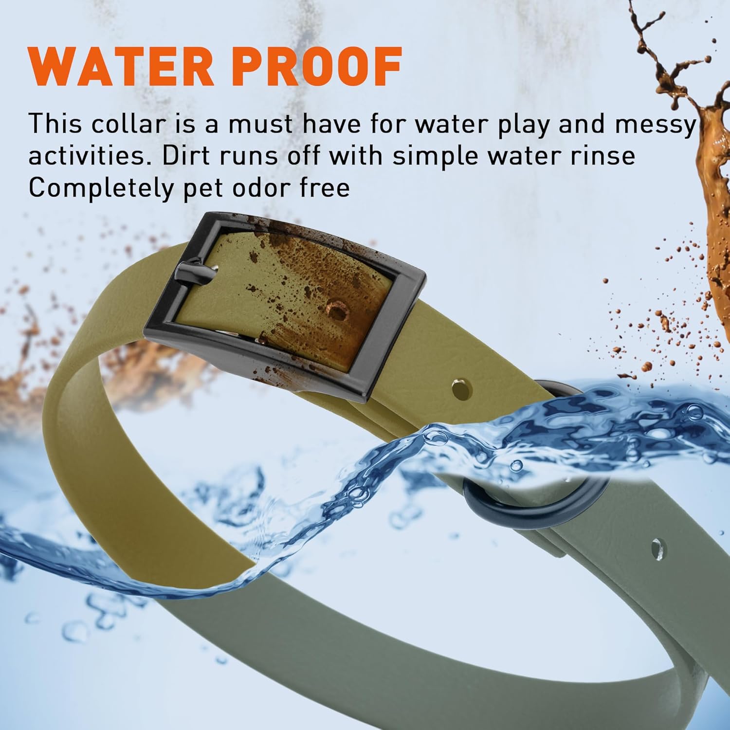 • Free Your Dog to romp in puddles and retrieve from lakes with the Dogline Biothane Waterproof Dog Collar. This water-repellent collar stays dry and odor-free, without shrinking or losing flexibility.