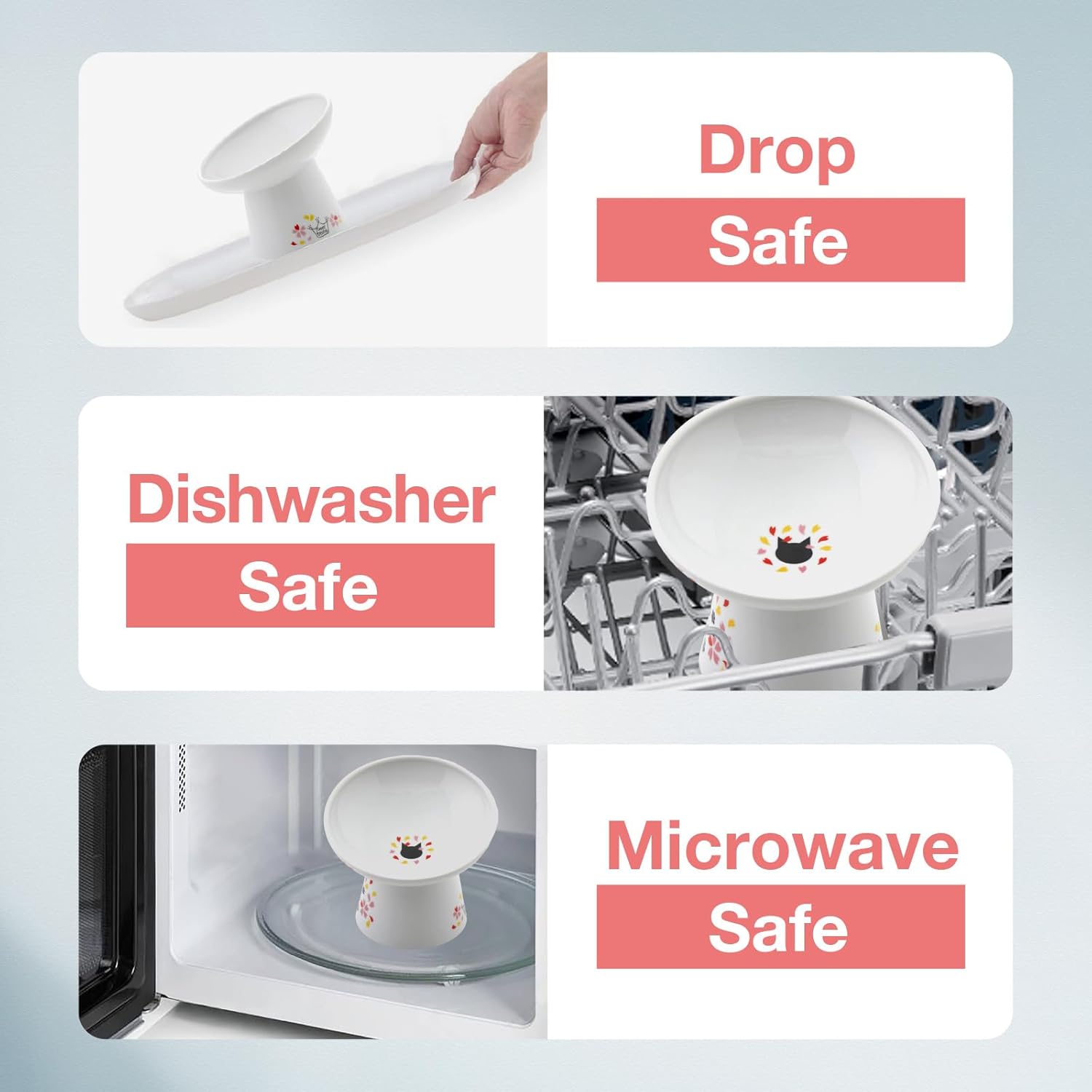 - Necoichi’s largest bowl yet! Bowl measures 6.1 x 5.7 inches in diameter, 1.8 inches deep and 5.3 inches tall, which when combined with the tilted lip, resolves any issues that certain breeds may have encountered with previous bowl types. The tilted lip makes it even easier for flat-faced cats and messy eaters to dine with less difficulty and stress.