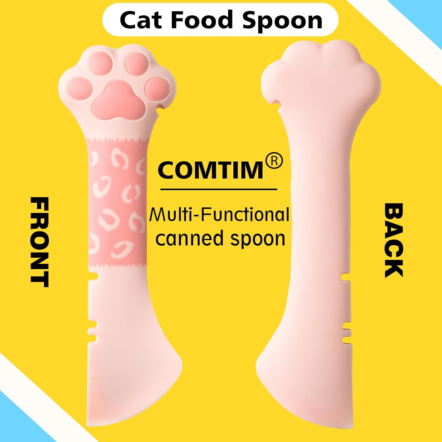 Comtim Small Cat Food Can Lids with Cat Food Spoon Set, Silicone Cat Food Can Covers Lids for 3 oz Cans, Cat Can Opener Spatula Cat Spoon for Wet Food