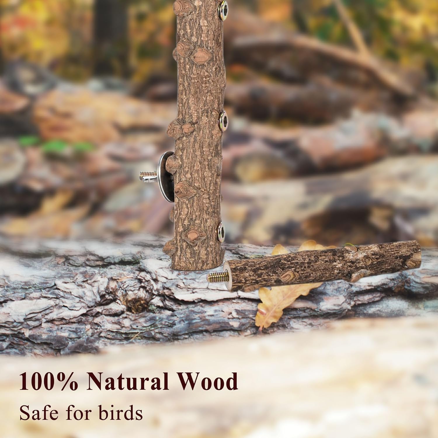 - High Quality Natural Wood: Bird ladder perch cage is mainly made of natural fruit tree hardwood. The surface of the bird perch is uneven and the bird will not slip when standing on it. Durable, non-toxic, non-harmful, non-cracking, for pet bird's chewing and playing, it is a favorite toy for birds. Nuts and washers are made of stainless steel, durable and trustworthy quality.