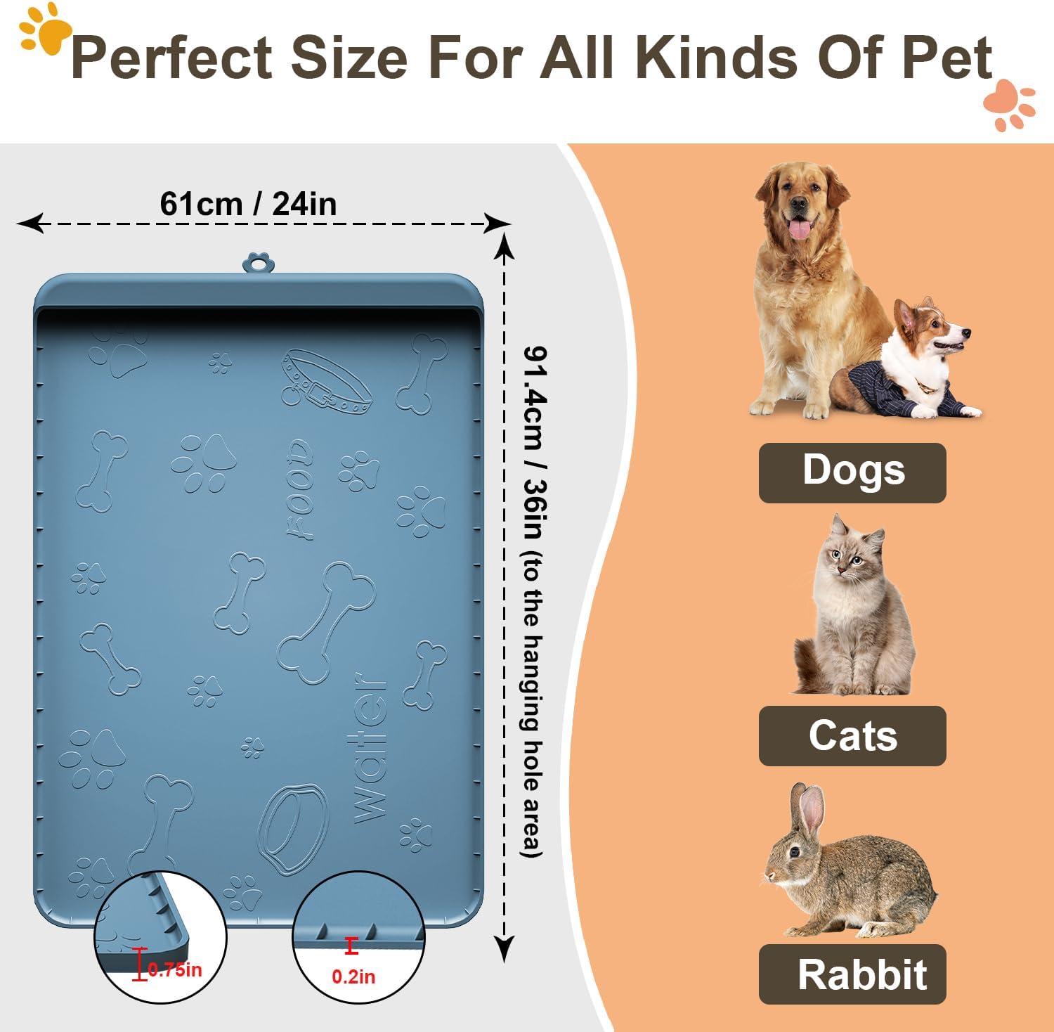 - 🐾〖Perfect Size〗: This 36”x24”x0.75" large sizes of dog mat is perfect for most medium and large dogs or multiple pets,which can hold cats and dogs'bowl, dish, feeder, or drinking fountain to keep your floor free of any mess!