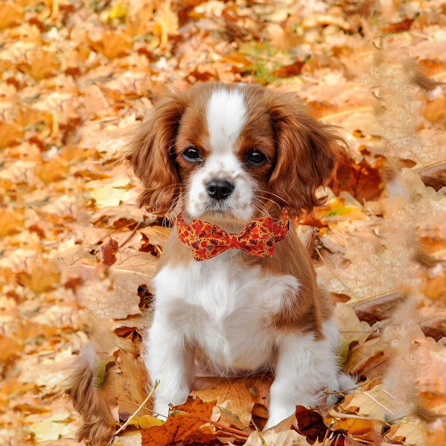 Lionet Paws Dog Collar with Bowtie - Cute Cotton Adjustable Fall Bowtie Dog Collar with Metal Buckle for Small Medium Large Dog Girl Boy Gift, L, Neck 16-24in