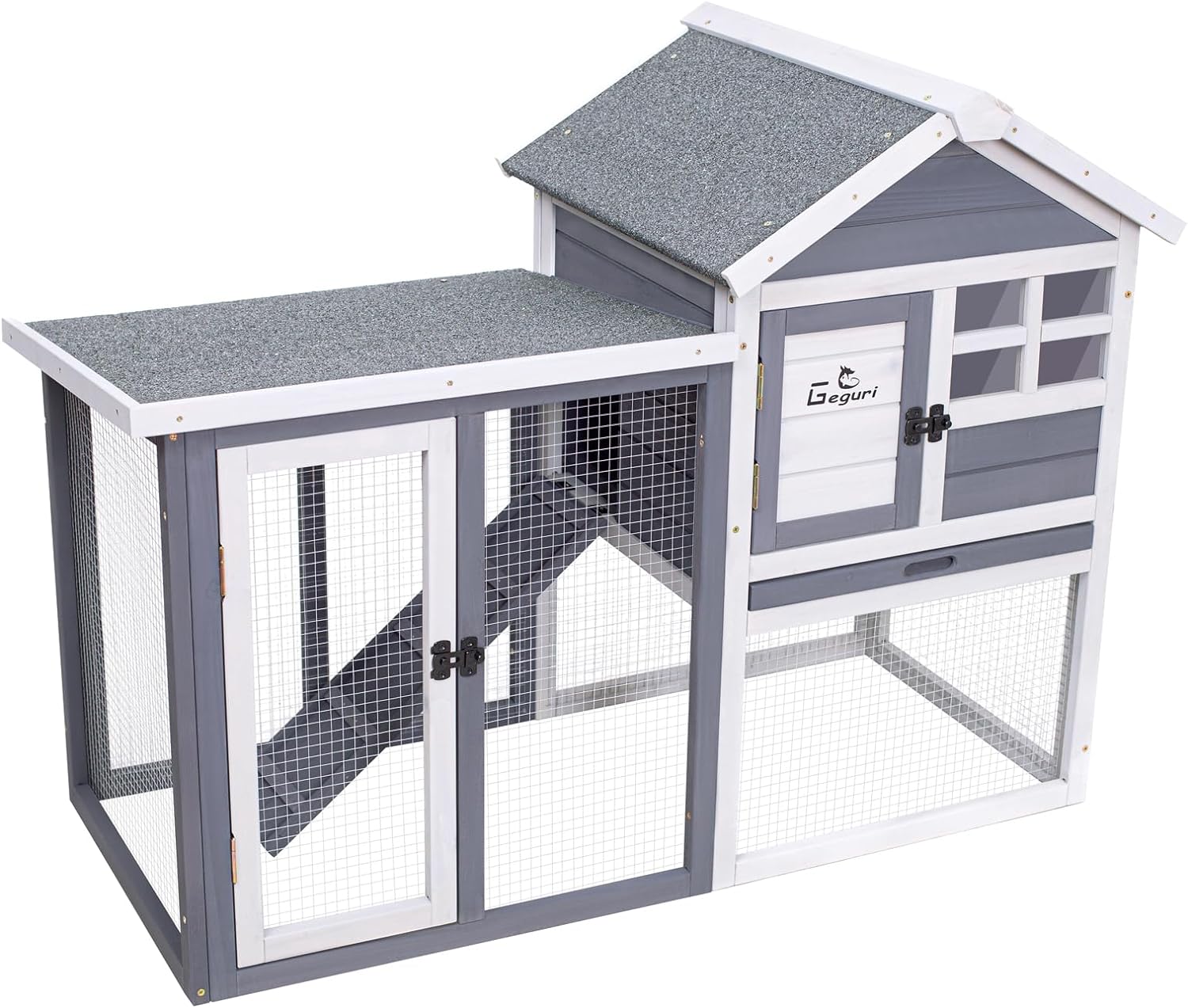 GEGURI Large Rabbit Hutch Indoor Outdoor Chicken Coop Wooden Bunny Cage with Waterproof Roof (48''L x 24''W x 36''H Grey)