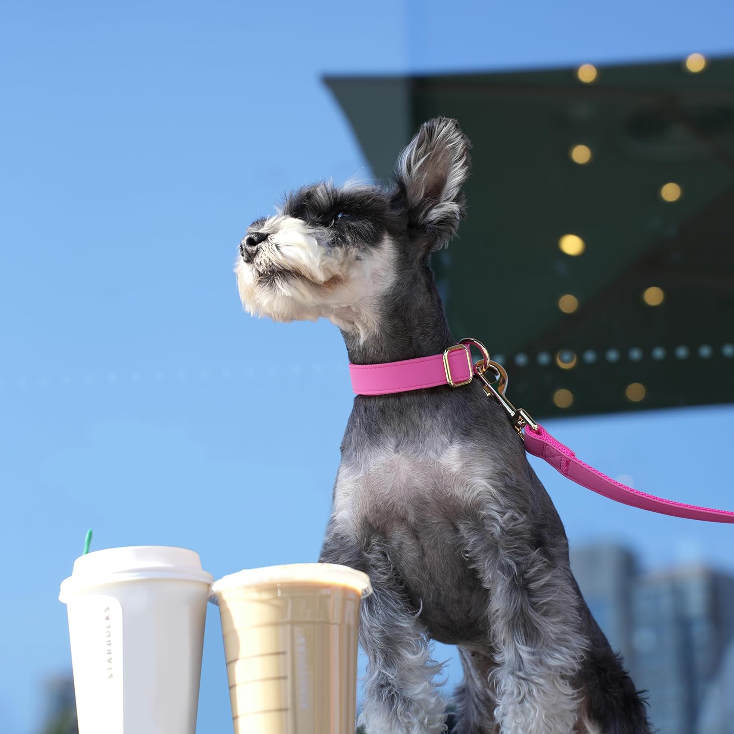 PET ARTIST Soft PU Leather Dog Collar, Bright & Stylish Hot Pink Dog Collar Girl with Quick Release Rose Metal Buckle, Nylon Padded Durable Pet Collars Adjustable for Small Dogs, Neck Fit 9-14"