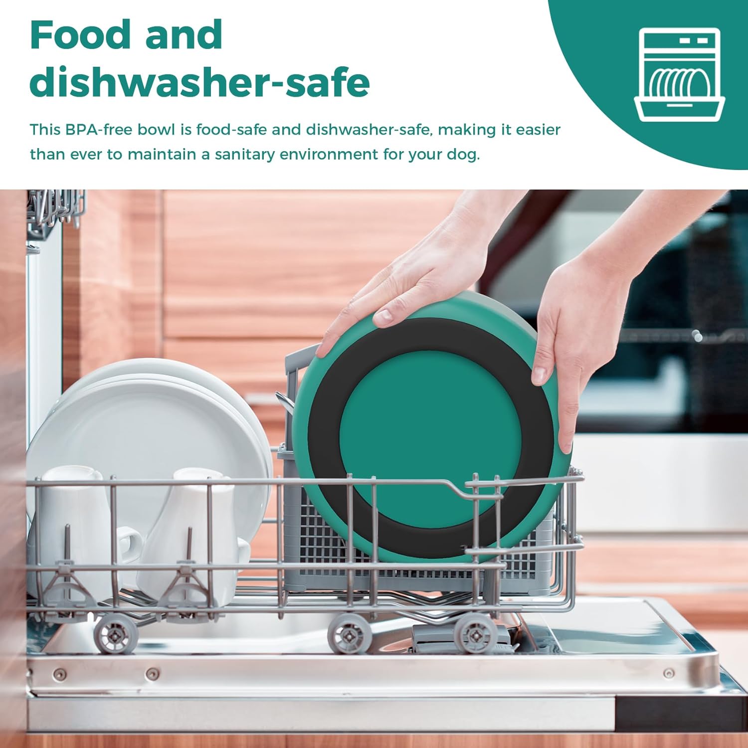 Dog Bowl, Stainless Steel Dog Food and Water Bowl with Non Slip Quiet Bottom, Easy to Clean, Dishwasher Safe, 40oz, Deep Green