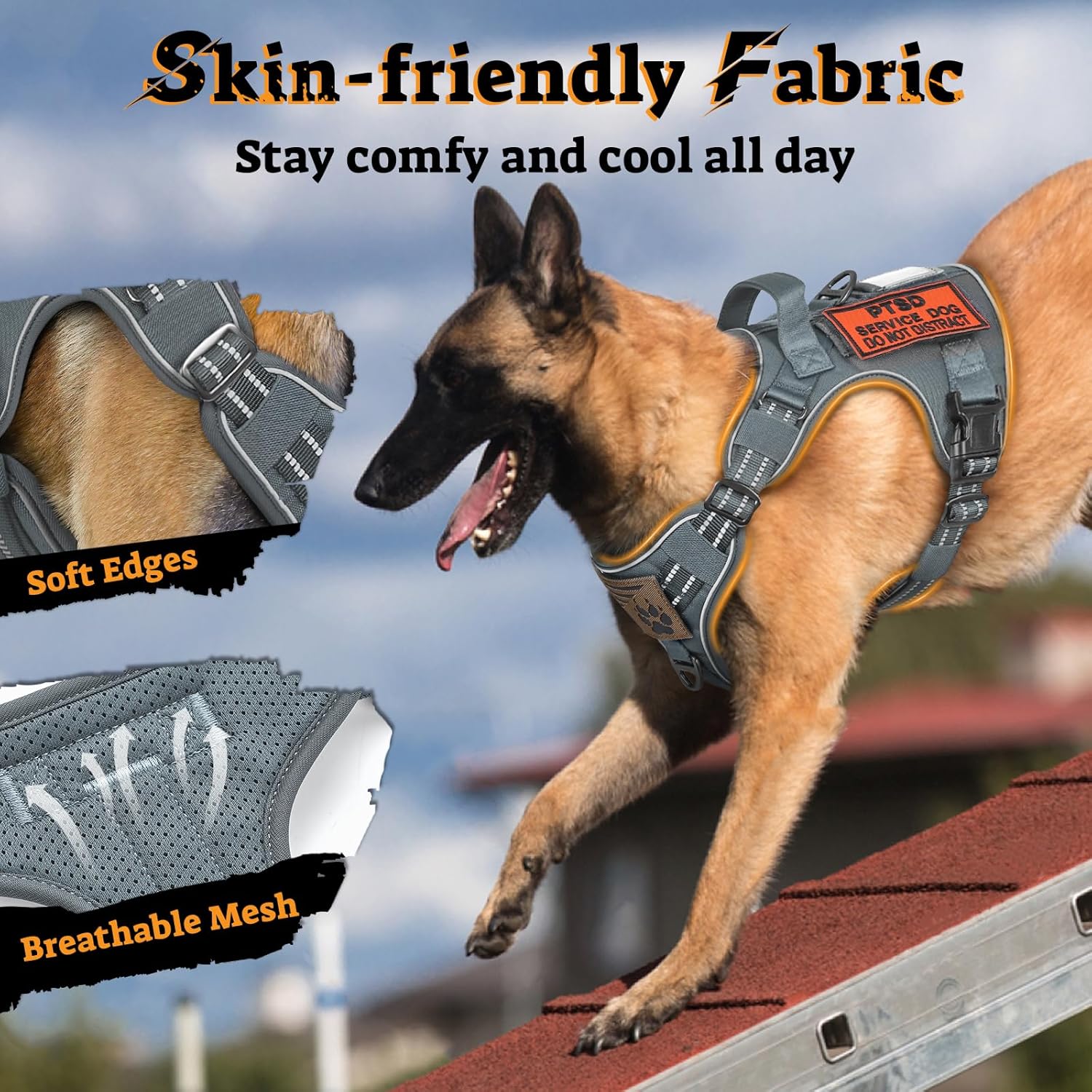 - Customizable Fit: The extra large dog harness has a chest girth of 23.6"-41.7" and a neck girth of 21.7"-32.3", with plenty of room for adjustment, making it suitable for breeds like Husky, Golden Retriever, German Shepherd, Bulldog, Rottie Puppy, Belgian Malinois, and more