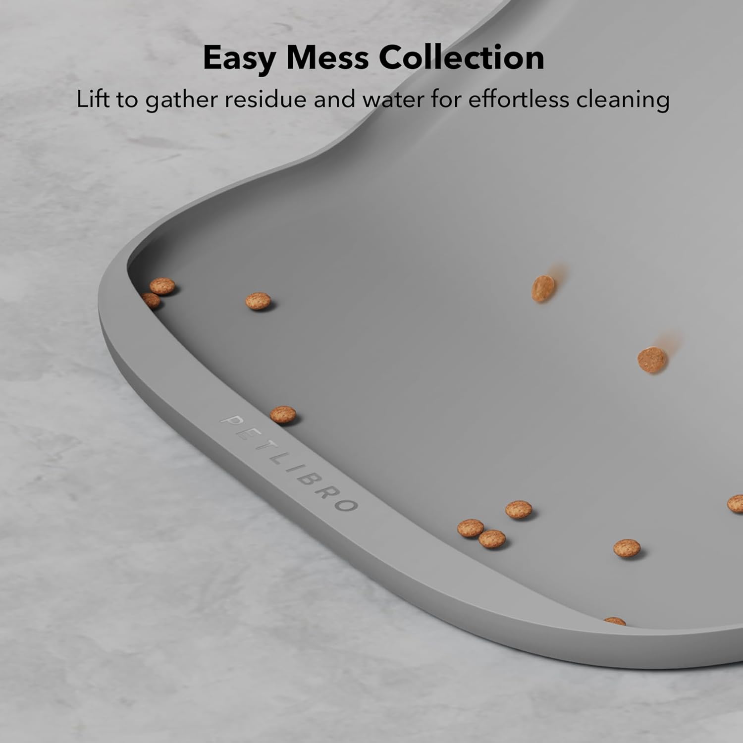 - Say Goodbye To Dirt And Mess: PETLIBRO dog mat for food and water effectively protects your floors with their raised edges, which are 0.59 in (15mm) high. These edges collect residues and spills, minimizing dirt and mess.