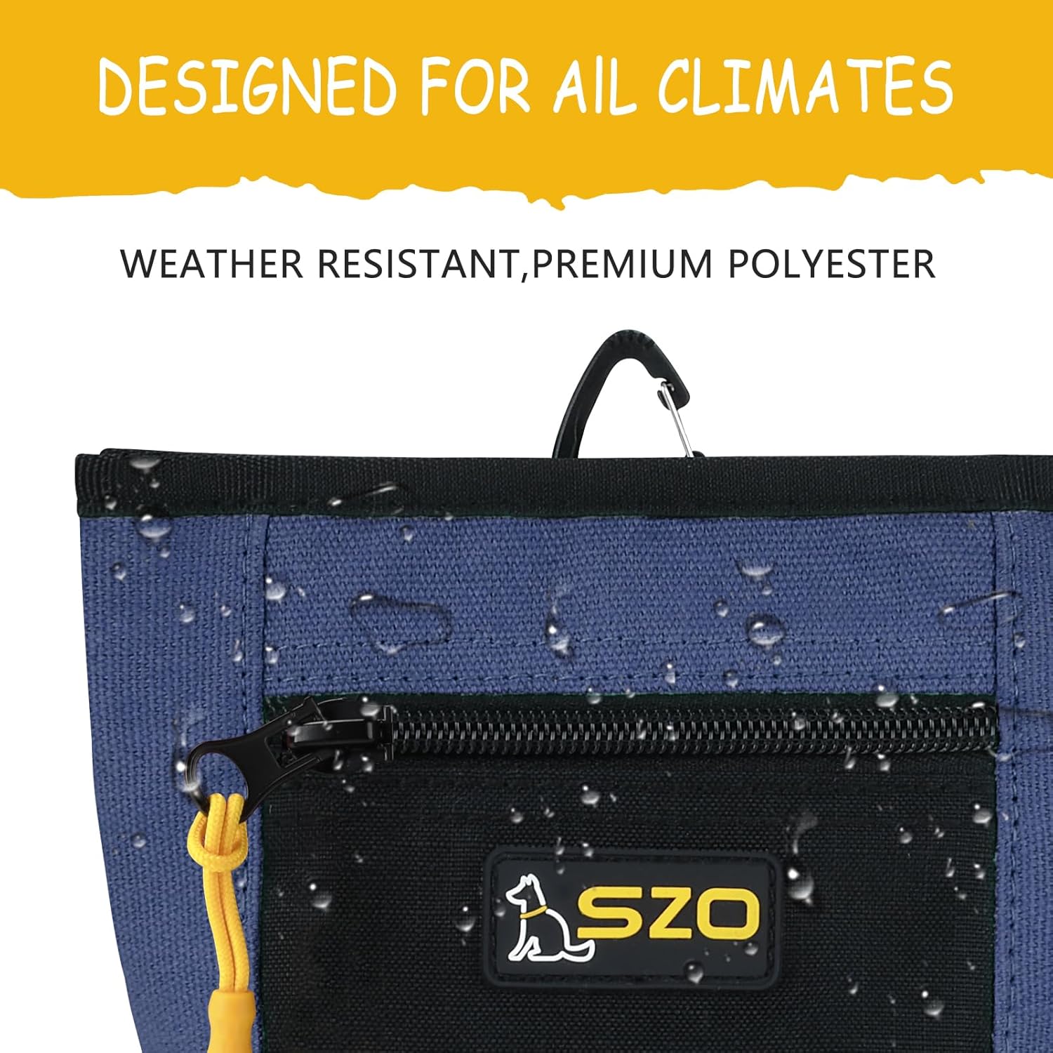 - Easy To Use — SZO dog treat pouch is designed to fit your everyday use when training your pets. It features a magnetic closure, allowing quick and one-handed access to your pet's favorite treats. And a front zipper pocket to secure personal items!