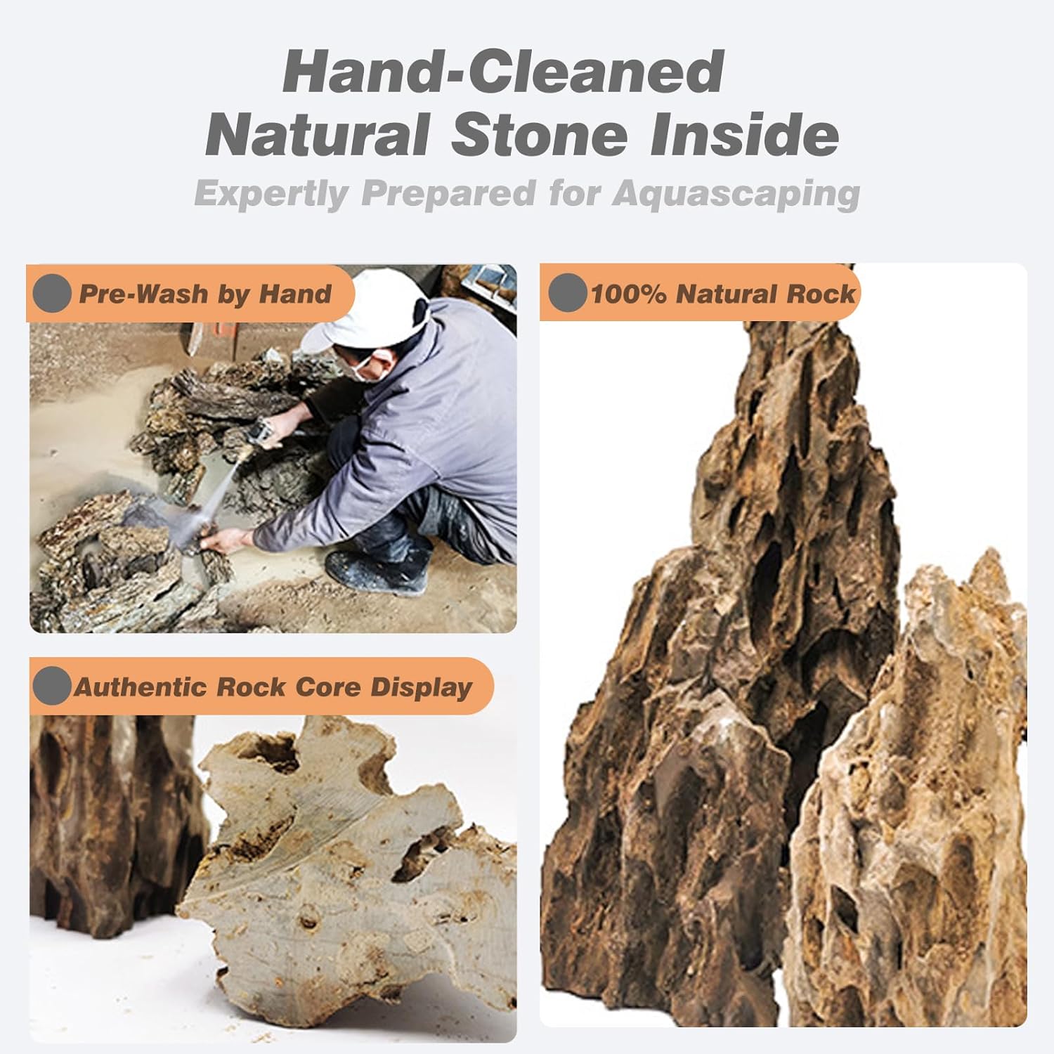 - ⛰High Quality & Safe:Carefully handpicked and pre-washed, hard and durable. This natural aquarium rock does not alter water chemistry and maintains stable pH, safe for freshwater, saltwater, shrimp, turtle, and reptile terrariums.