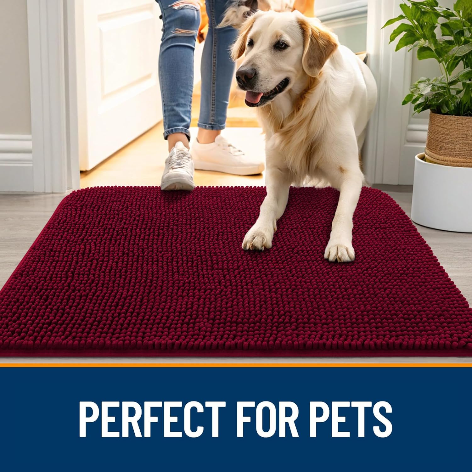 OLANLY Dog Door Mat for Muddy Paws 59x24, Absorbs Moisture and Dirt, Absorbent Non-Slip Washable Doormat, Quick Dry Chenille Mud Mat for Dogs, Entry Indoor Entryway Carpet for Inside Floor, Burgundy