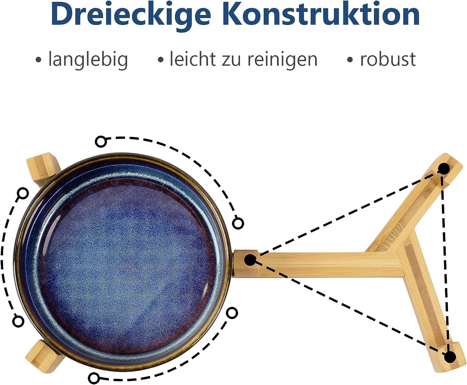 - [Double Bowl Design]:One dog bowl for food and one for water, Each ceramic cat bowl has a Unique wooden stand, raising the dishes closer to your pet for more comfortable eating