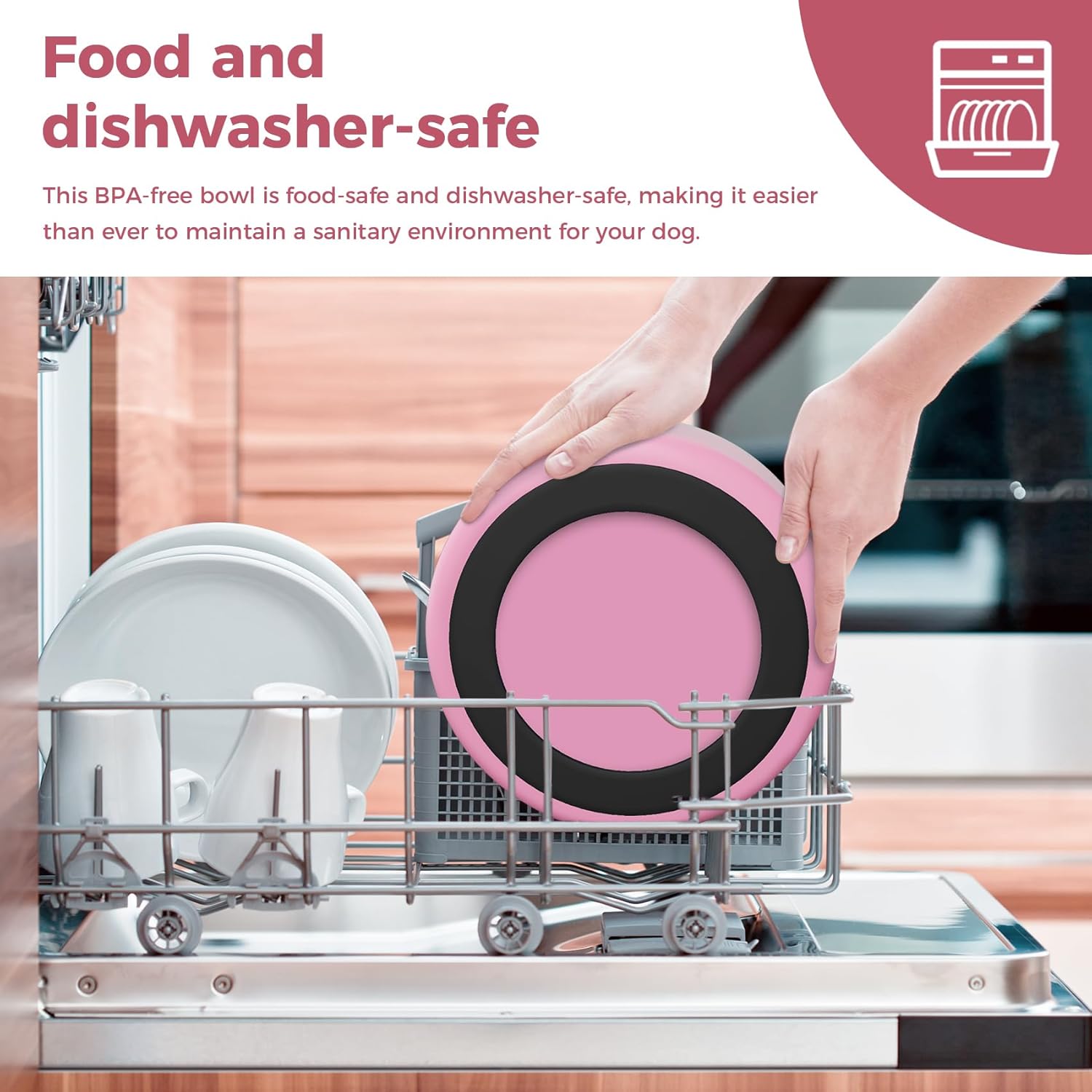Dog Bowl, Stainless Steel Dog Food and Water Bowl with Non Slip Quiet Bottom, Easy to Clean, Dishwasher Safe, 40oz, Pink