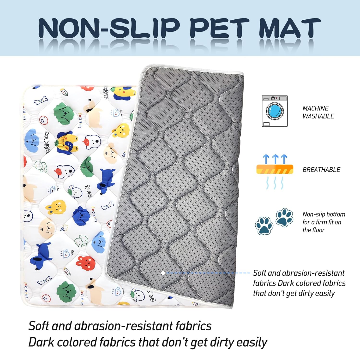- Non-Slip Design: This dog mat equipped with upgrade ANTI-SLIP bottom, it can keeps the mat in position and prevents moving and shifting when your lovely pet during a nap or playtime, make your lovely pets feel safe!