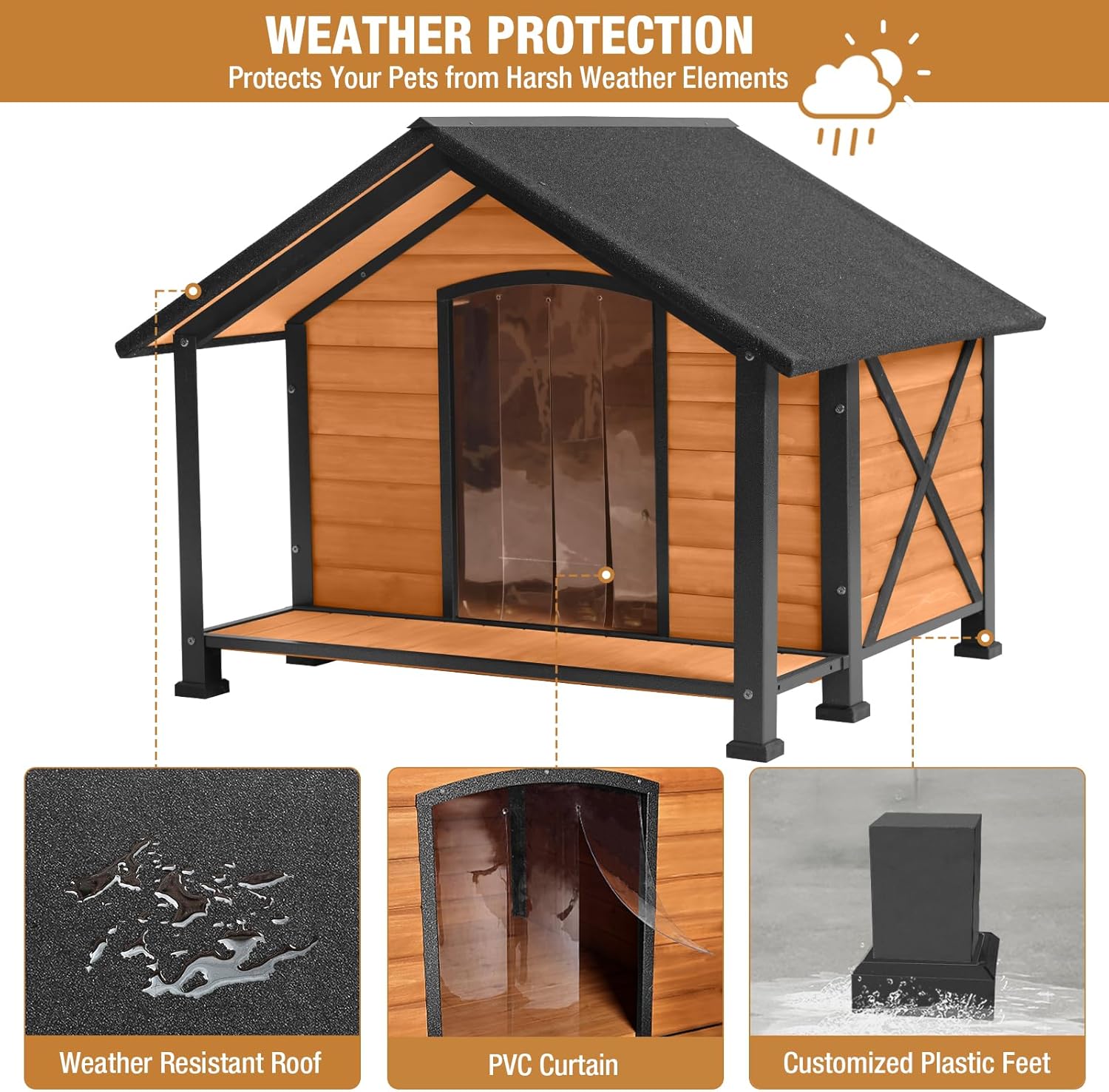 - 【Strong & Durable】Our dog house Combine with solid wood and UNIQUE all-around stronger iron frame, prevent destruction and chewing from animals. Anti a 180-pounds adult can easily sit on the platform.