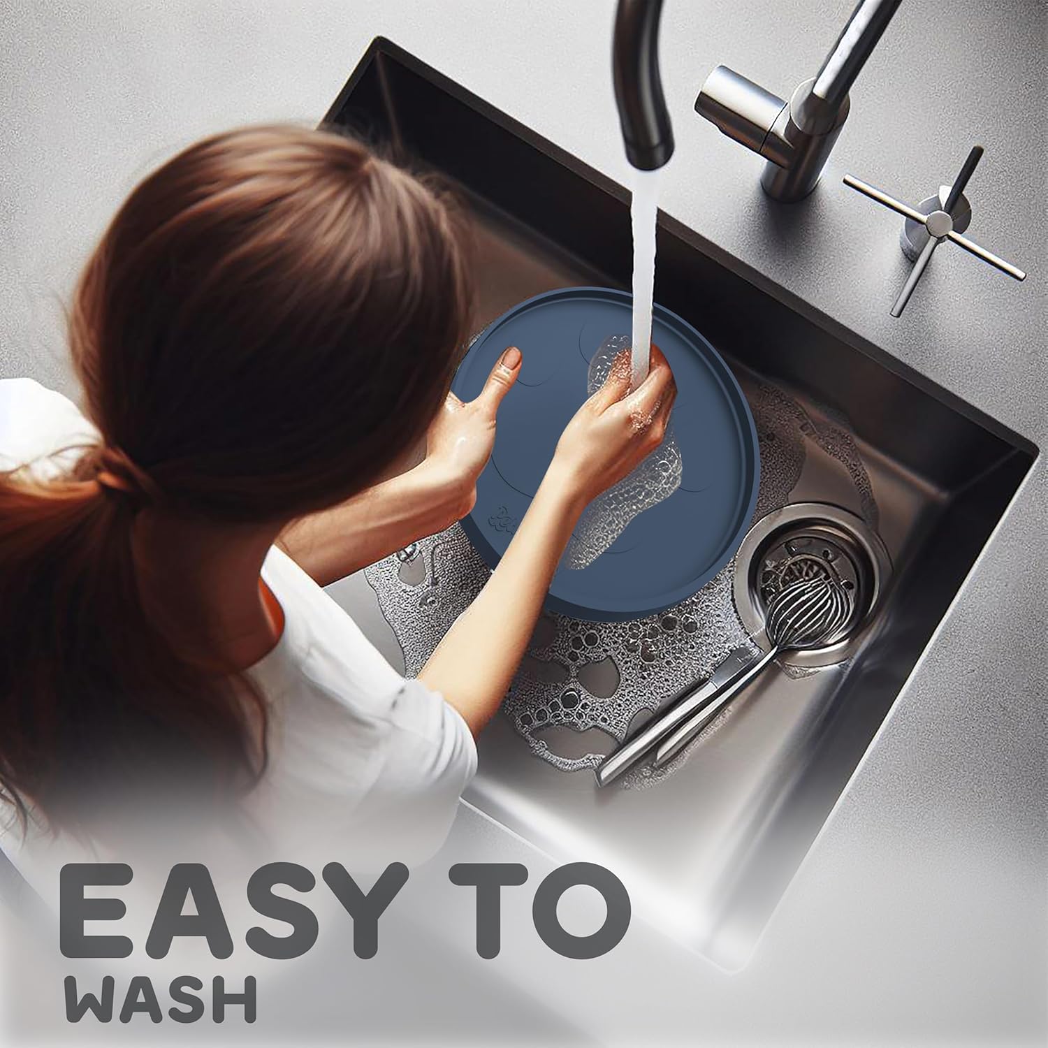 - RAISED EDGES KEEP THE MESSES WHERE IT BELONGS: Keep Your Home Spotless & Enjoy Hassle-Free Dinnertime with Your Furry Friend! Whether they eat with enthusiasm or like to play with their food, our 10" Round dog food mats for floors waterproof are specially designed to reduce cleanup time for both wet and dry foods. Treat yourself and your furry pal to a cleaner, more enjoyable mealtime experience.