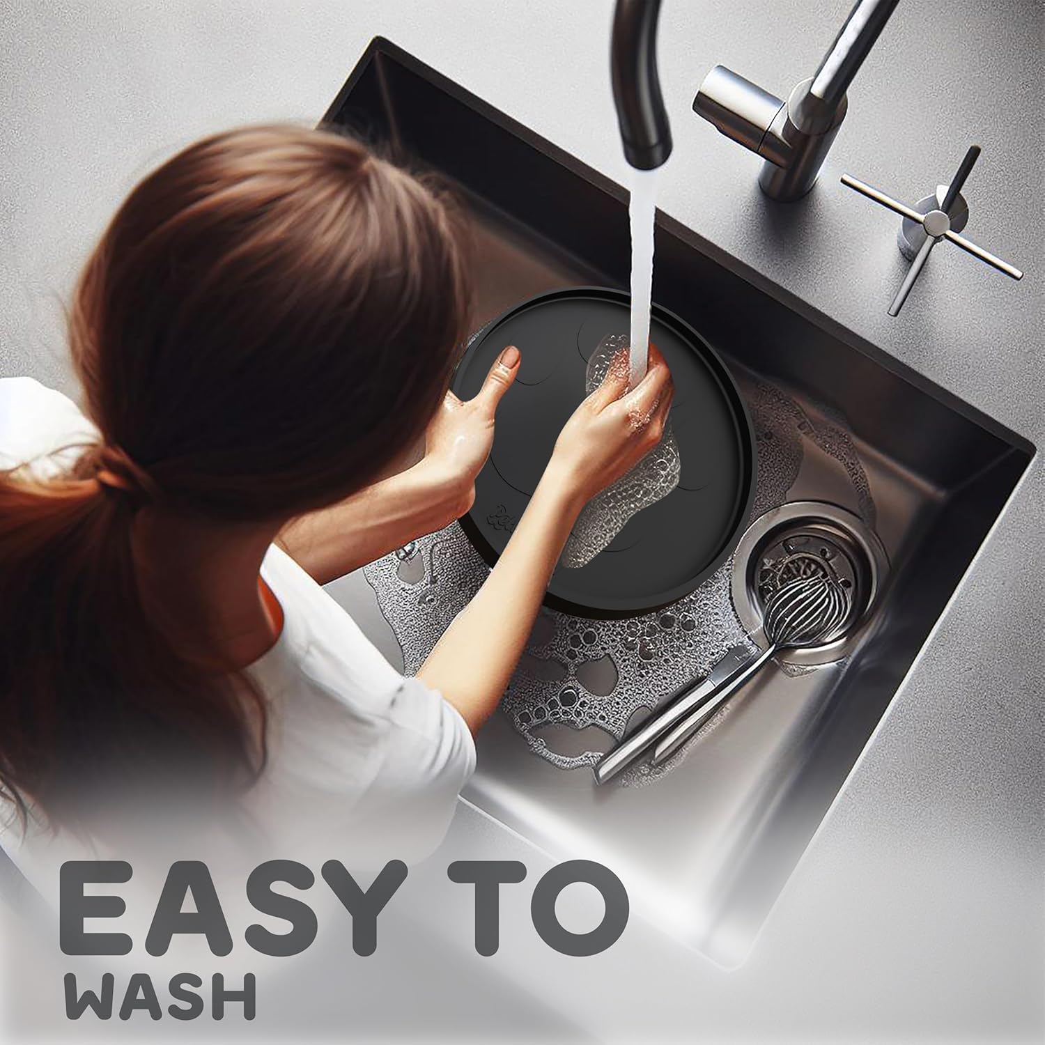 - RAISED EDGES KEEP THE MESSES WHERE IT BELONGS: Keep Your Home Spotless & Enjoy Hassle-Free Dinnertime with Your Furry Friend! Whether they eat with enthusiasm or like to play with their food, our 10" Round dog food mats for floors waterproof are specially designed to reduce cleanup time for both wet and dry foods. Treat yourself and your furry pal to a cleaner, more enjoyable mealtime experience.