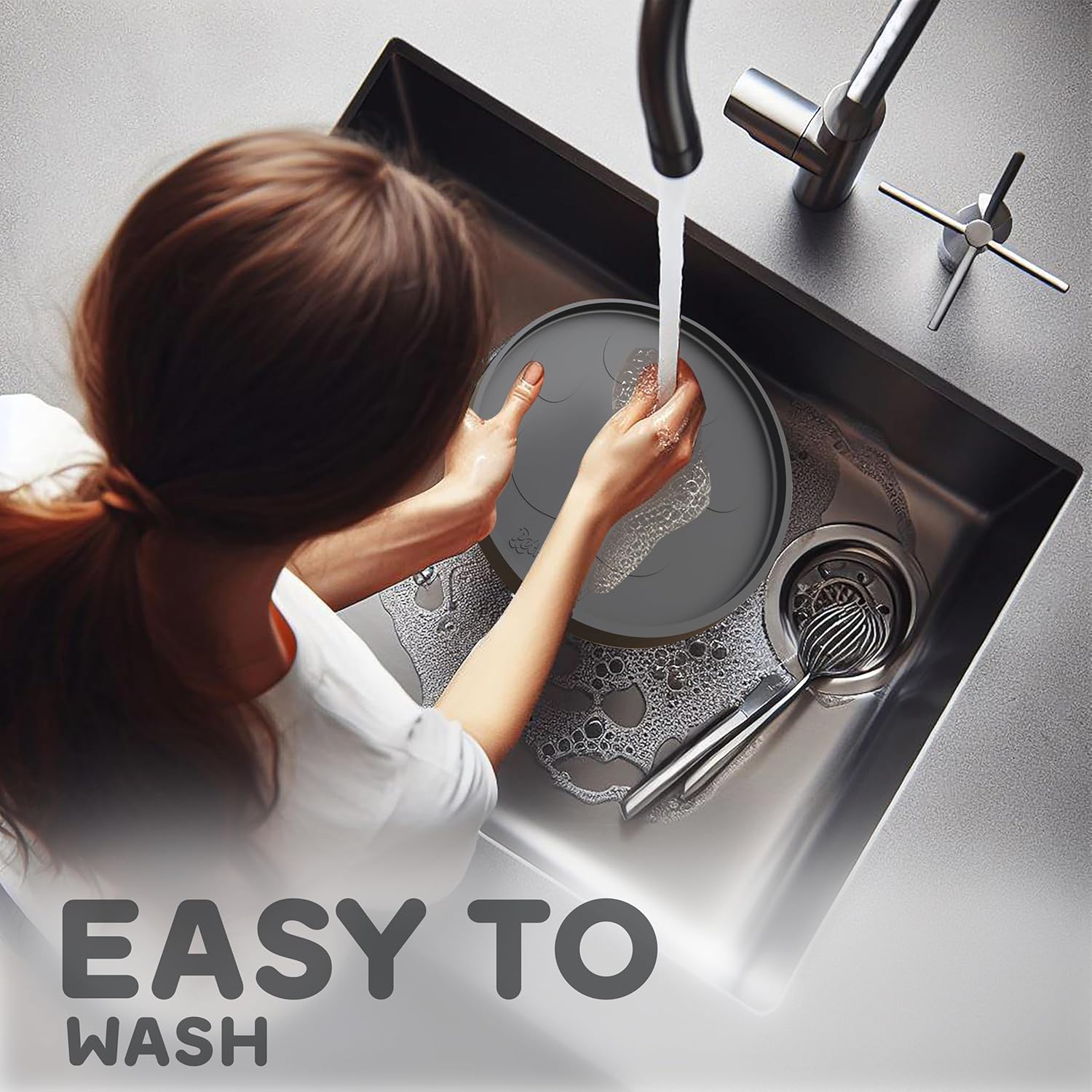 - RAISED EDGES KEEP THE MESSES WHERE IT BELONGS: Keep Your Home Spotless & Enjoy Hassle-Free Dinnertime with Your Furry Friend! Whether they eat with enthusiasm or like to play with their food, our 10" Round dog food mats for floors waterproof are specially designed to reduce cleanup time for both wet and dry foods. Treat yourself and your furry pal to a cleaner, more enjoyable mealtime experience.