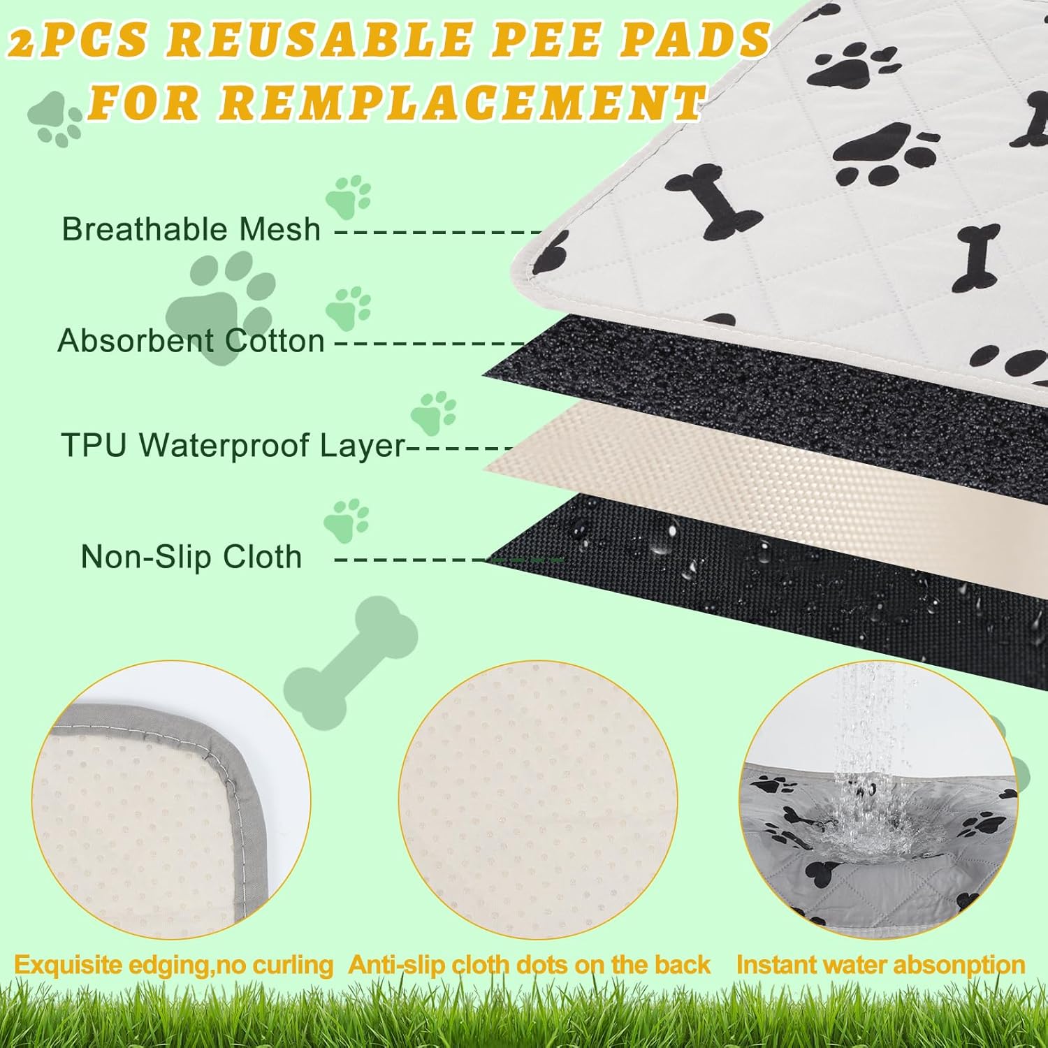 MEEXPAWS Dog Grass Pad With Tray/Foldable Liner Base Large, Litter Box Artificial Pee Pad for Indoor Potty, Odor Free Instant-Penetration Hemmed Edge, 2 PCS Reusable