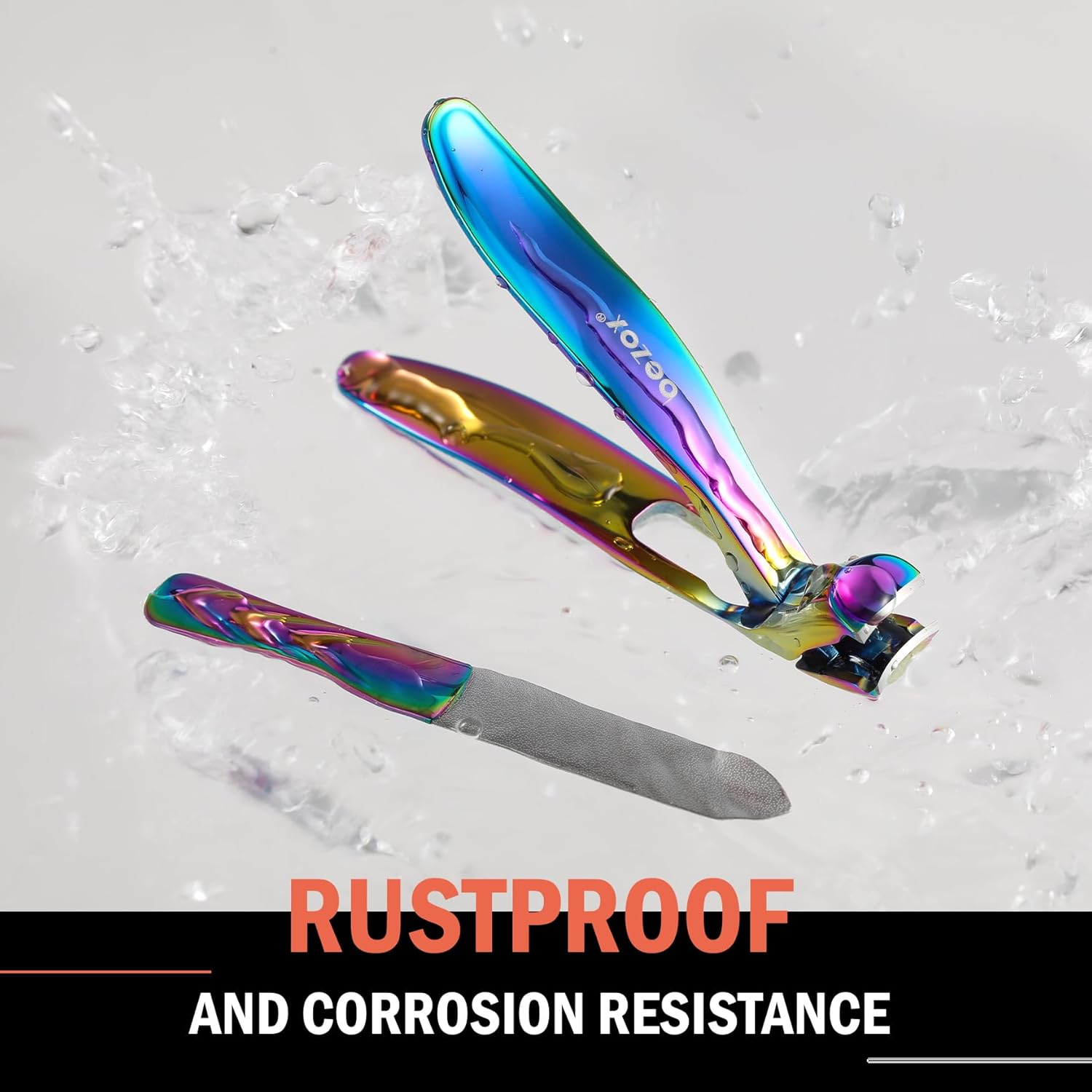 BEZOX Ergonomic Angled Head Thick Toenail Clipper for Seniors - Large Nail Clippers for Thick and Ingrown Nails with Metal Nail File, Premium Nail Cutter Fingernail Clipper for Men and Women - Rainbow