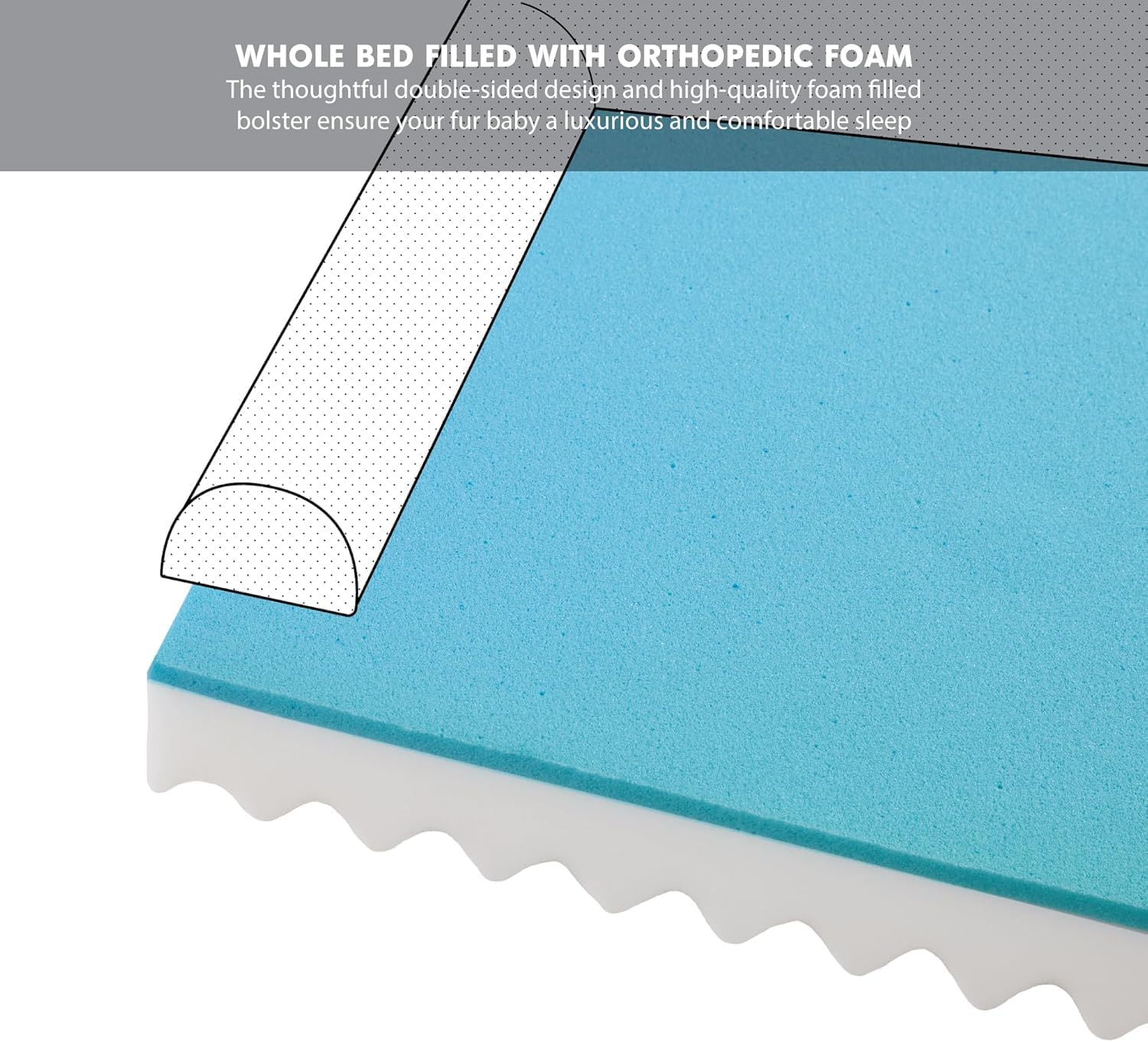 - Orthopedic Support Dog Couch with 2 layer foam base: 3" egg crate foam and 0.5" memory foam helps distribute weight evenly and provides good amount of softness and support to relieve pressure and joint pains for senior pets.