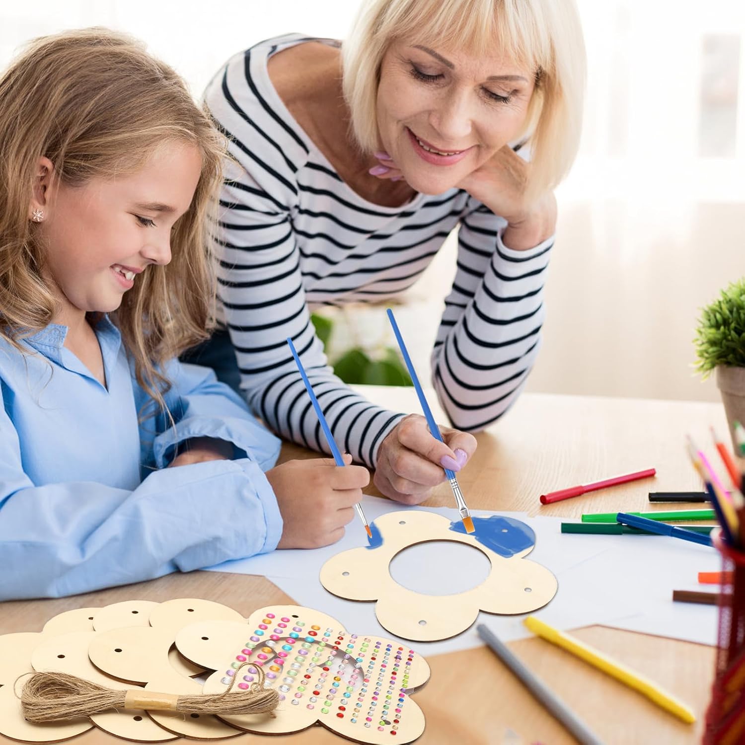 - Craft Project For Kids: Design and color the flower-shaped wood chips can stimulate children's creativity and hands-on ability, and improve children's hand-eye coordination. The process of parents accompanying their children to do handicrafts can also enhance the parent-child relationship.By making bird feeders, children can learn about animals and nature.