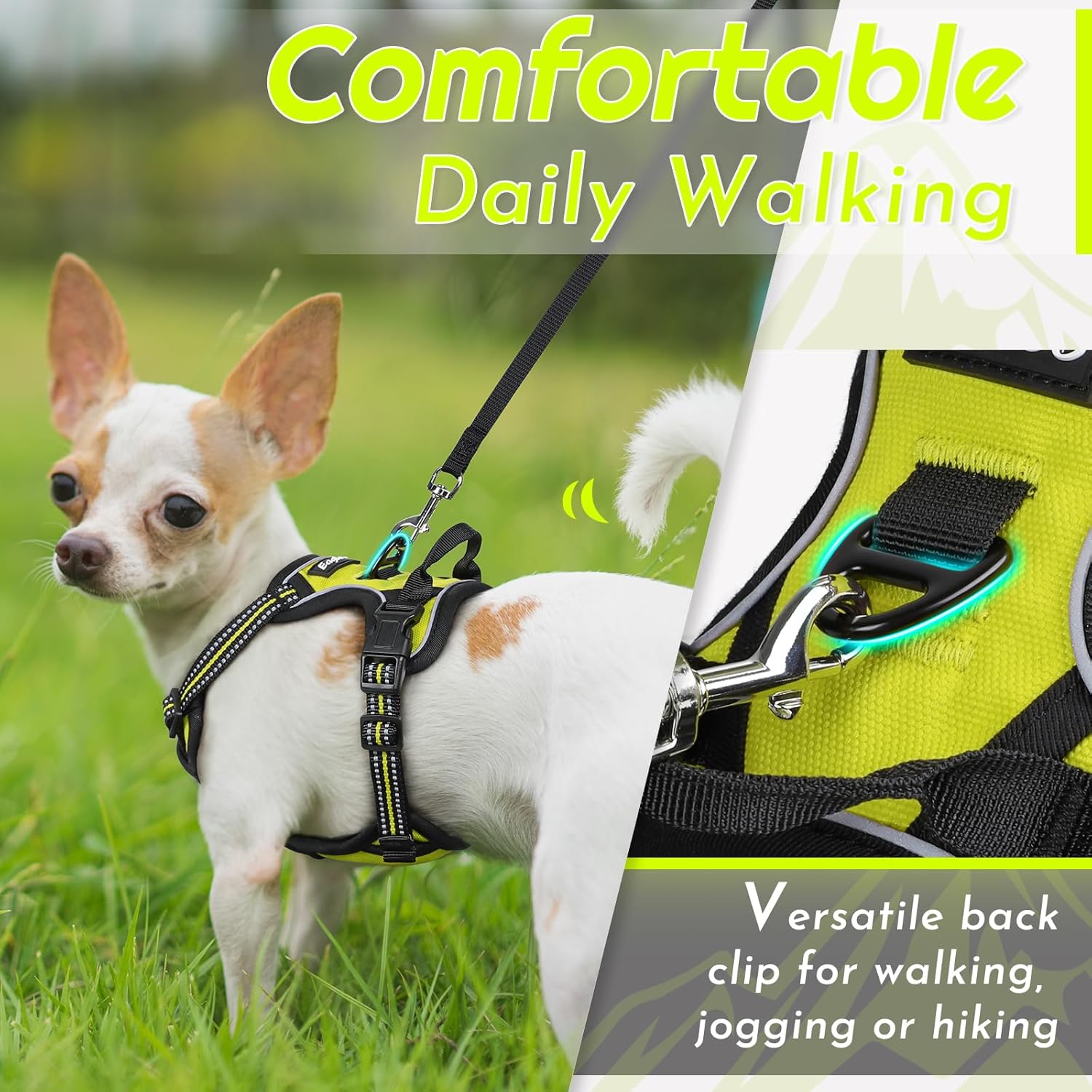 Eagloo Small Dog Harness No Pull, Service Vest with Reflective Strips and Control Handle, Adjustable and Comfortable for Walking, No Choke Pet Harness with 2 Metal Rings, Green, XS