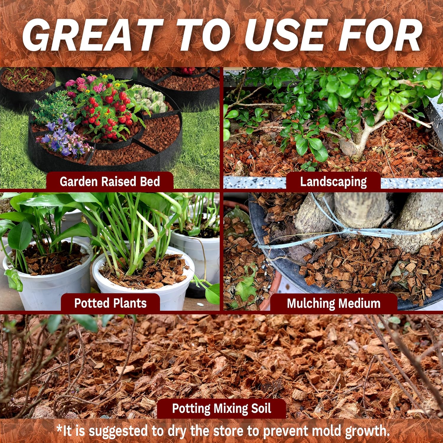 - [VERSATILE APPLICATION]: Our coco coir chips are ideal for indoor and outdoor gardening, including houseplants, herbs, vegetables, flowers, and more. Coco husk for plants can be used in pots, planters, container gardening, hydroponics, and garden beds, providing a natural and attractive backdrop for your plants. It can be used as a standalone substrate or mixed with other materials to create a custom planting mix.