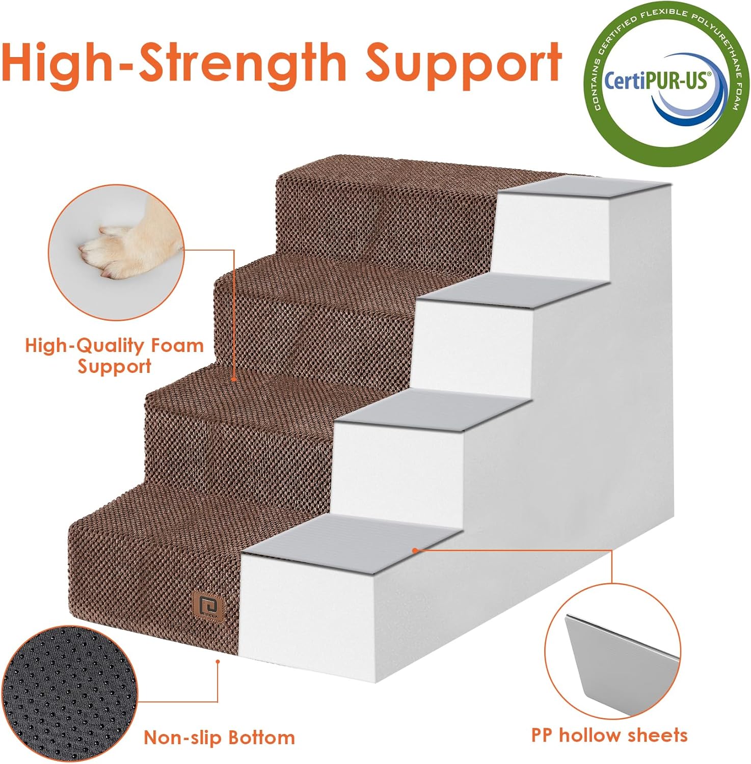 EHEYCIGA Dog Stairs for Bed 20" H, 4-Step Extra Wide Dog Steps for High Bed, Pet Steps for Small Dogs and Cats, Non-Slip Balanced Pet Ramp Indoor, Brown
