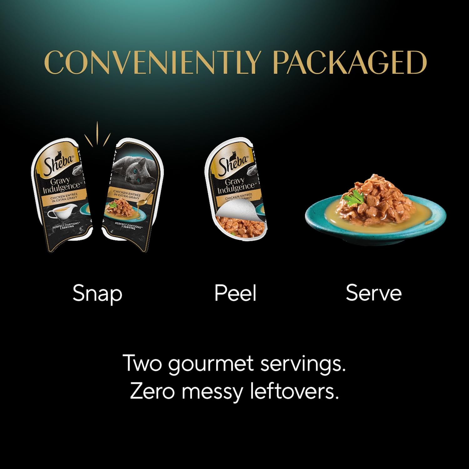 Sheba Gravy Indulgence Adult Wet Cat Food Chicken Entree in Extra Gravy, 2.6 oz. Twin-Pack Trays (24 Count, 48 Servings)