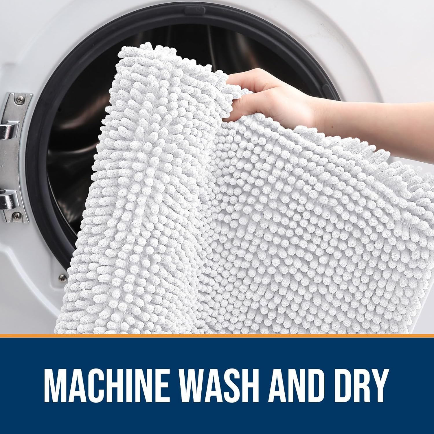 OLANLY Dog Door Mat for Muddy Paws 70x24, Absorbs Moisture and Dirt, Absorbent Non-Slip Washable Doormat, Quick Dry Chenille Mud Mat for Dogs, Entry Indoor Entryway Carpet for Inside Floor, White