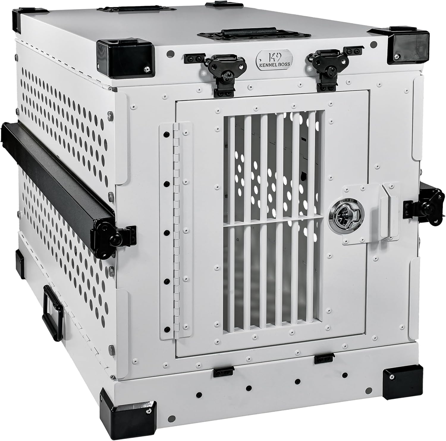 - SAFE AND SECURE: Constructed of durable lightweight aluminum and thoughtfully engineered with your dog’s safety in mind. Strong and secure design to ensure your pet is safely contained at all times. Includes 16 knurled bolts giving you the option to quickly increase the overall rigidity and strength of your crate.