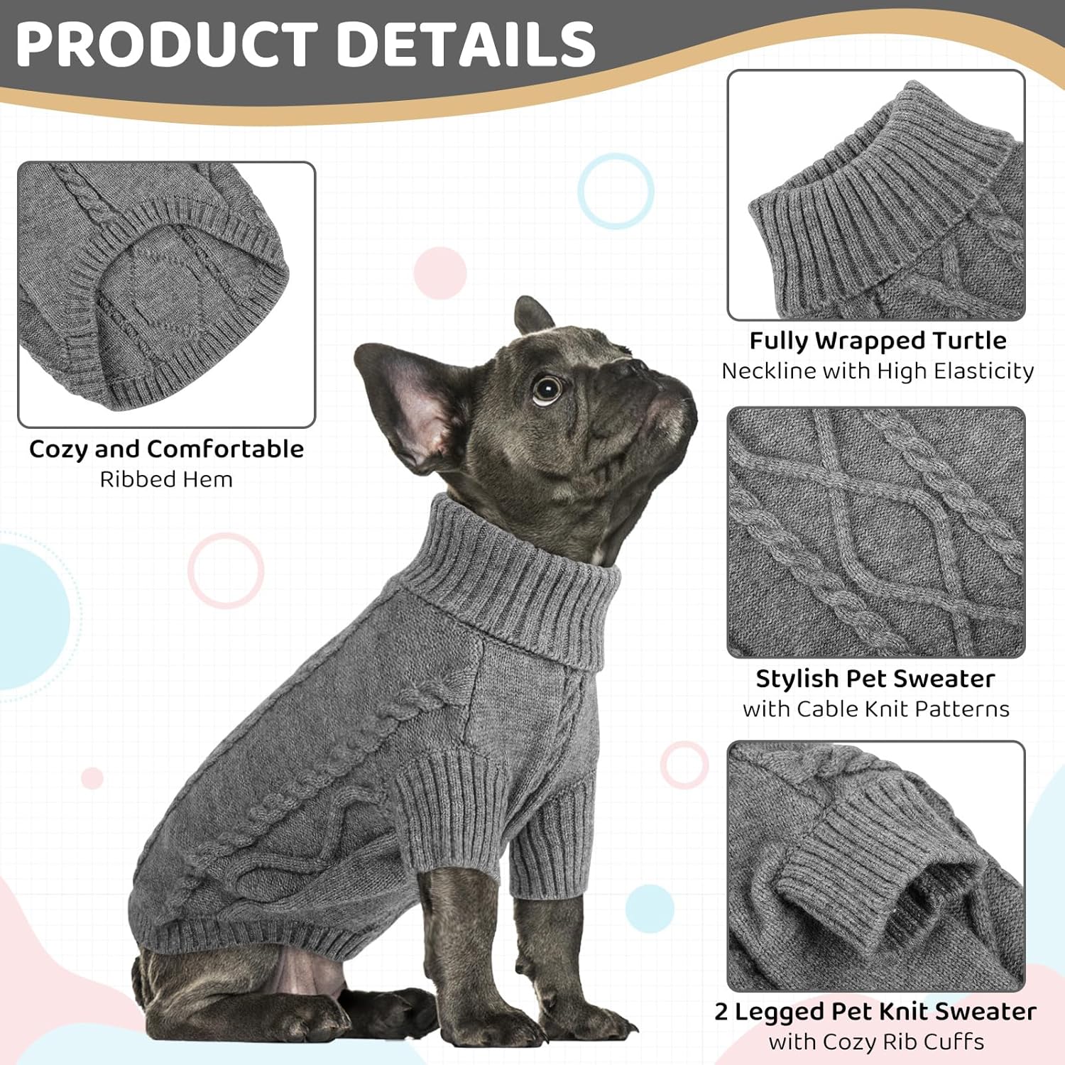- TURTLENECK & FULLY BELLY WRAP PULLOVER - The knitted large dog jacket is a turtleneck pullover that can fully wrap your pet's neck, chest & belly snugly and keep warm well. The dog sweaters XXL are the best for winter dog outfits.