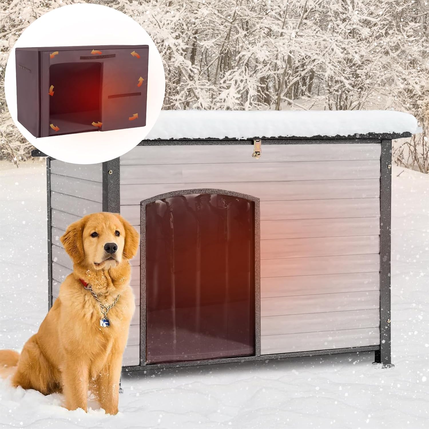 - Unique Insulation Liner Design: This dog house comes with a unque heated liner which is made of high density sponge and fabric with PVC coating. It can help your dogs keep from cold weather hurts, give them a warm house. The liner is easy to attach and also can be remove to machine-washable.