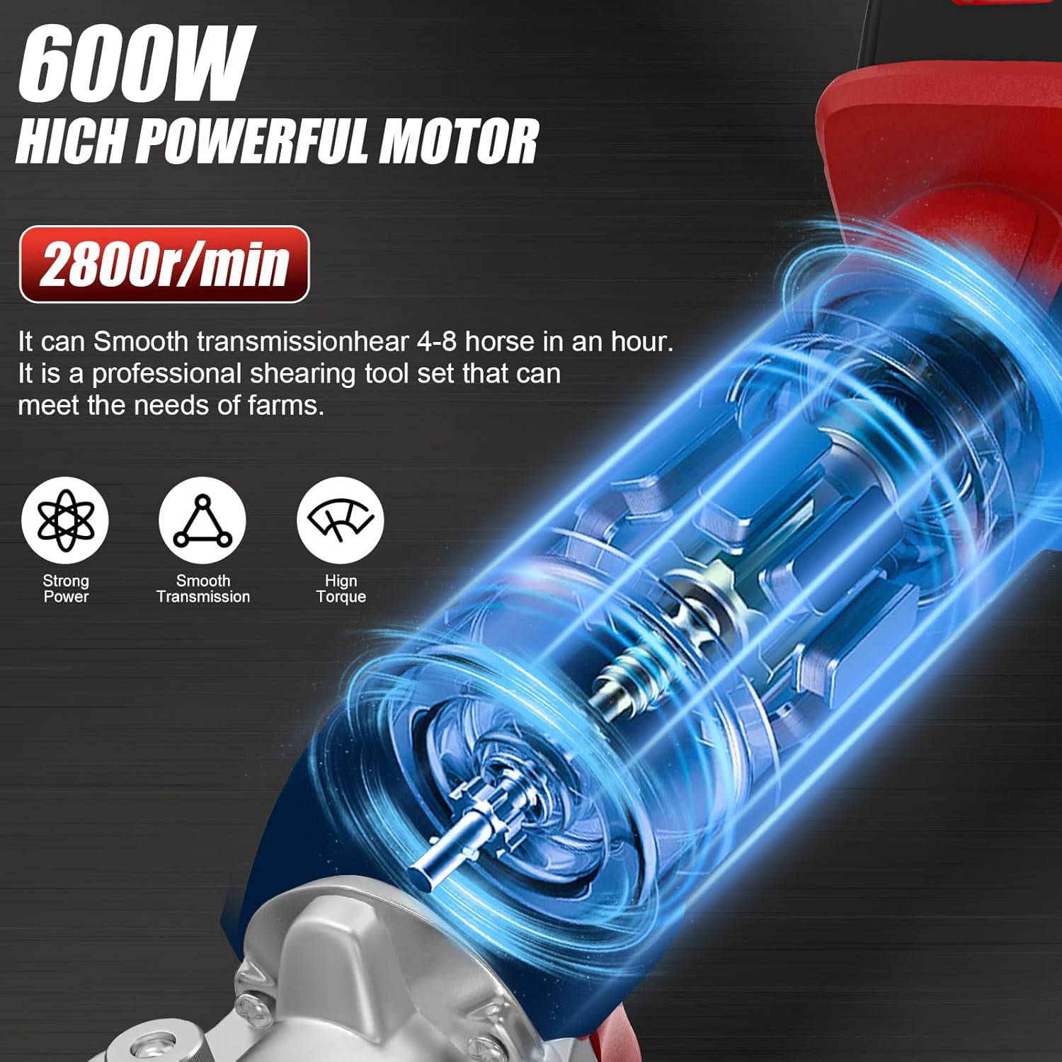 - ✅【Brushless Motor&Cooling System】The 600W high-power brushless motor, operates at a speed of 2800RPM, featuring ultra-low power consumption, high-temperature resistance, strong output, and long machine life. With an aluminum head and airflow vents, it effectively prevents overheating of the cutter head area during shearing. Additionally, the vent includes an impurity filter to prevent hair from damaging the internal motor.
