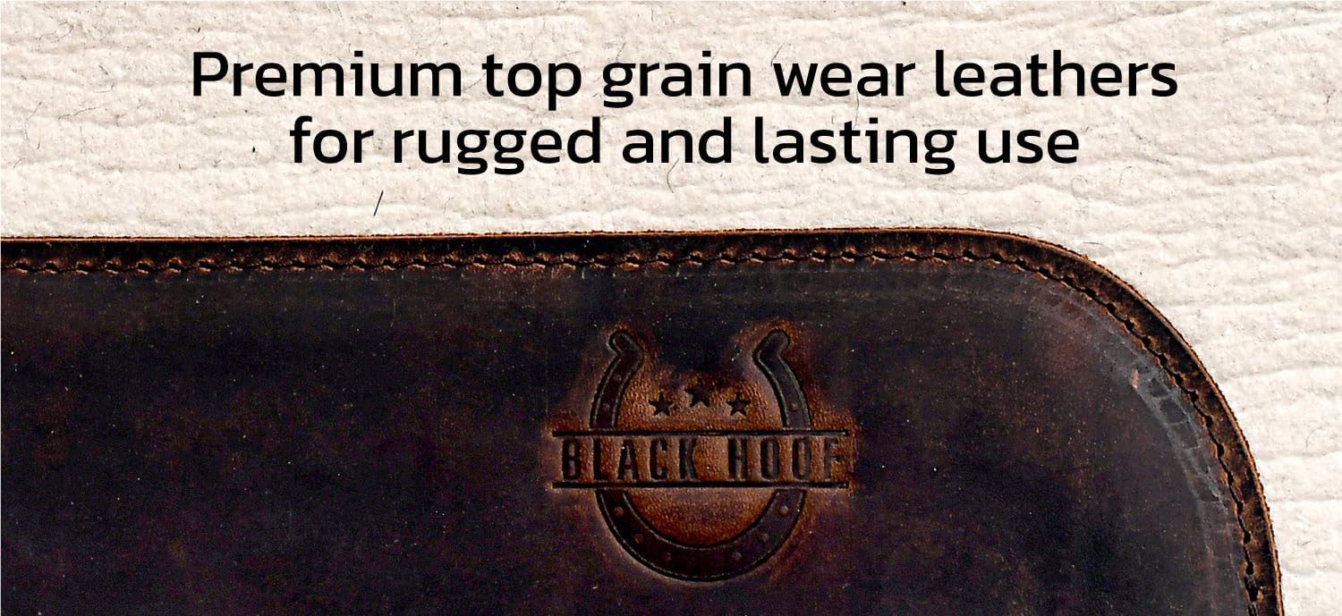 - ENHANCED DURABILITY WITH TOP-GRAIN WEAR LEATHERS Built with premium top-grain wear leathers, this saddle pad is designed to withstand the daily rigors of horseback riding, providing lasting durability and performance for years to come.