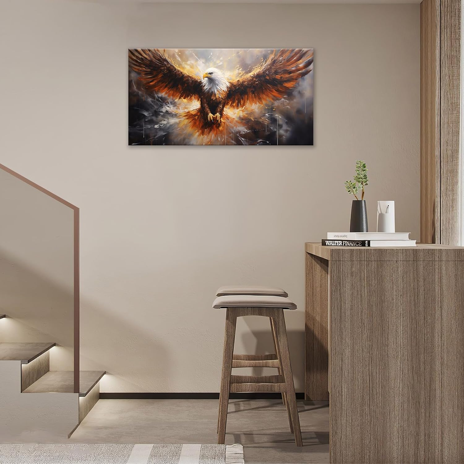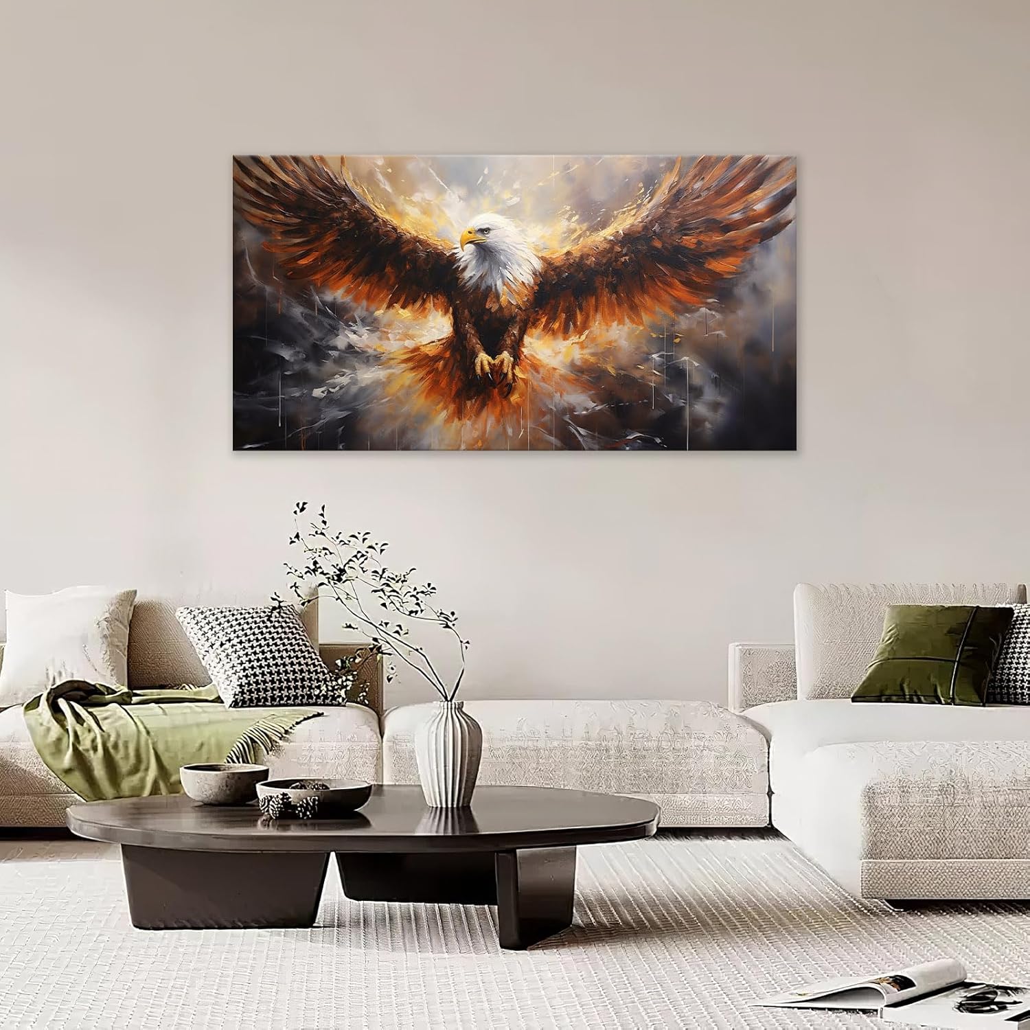 Bald Eagle Animal Large Canvas Flying Bird Wildlife Oversize Wall Art Living Room Big Wings Kitchen Pictures Framed Prints Aesthetics Wall Decor Painting Artwork for Bedroom Dining Office Home 60"x30"