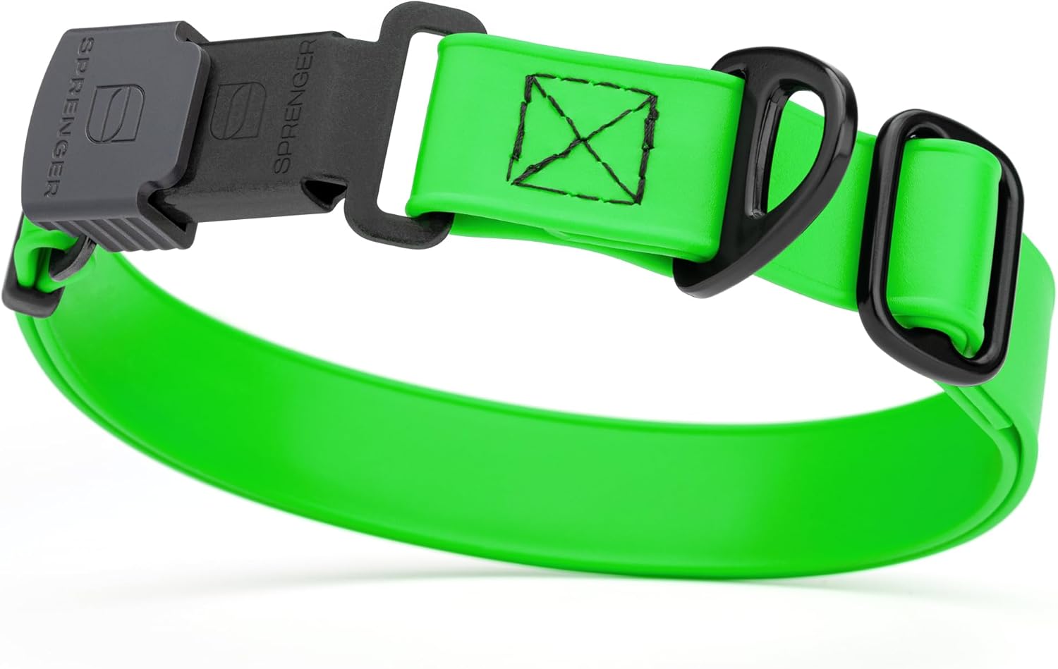 Dogline Biothane Waterproof Dog Collar with Herm Sprenger Stainless Steel Quick Release Buckle – Heavy Duty Tactical Durable Collar for Dogs – Comfortable and Safe Pet Collar, W 3/4" L 12-19", Green