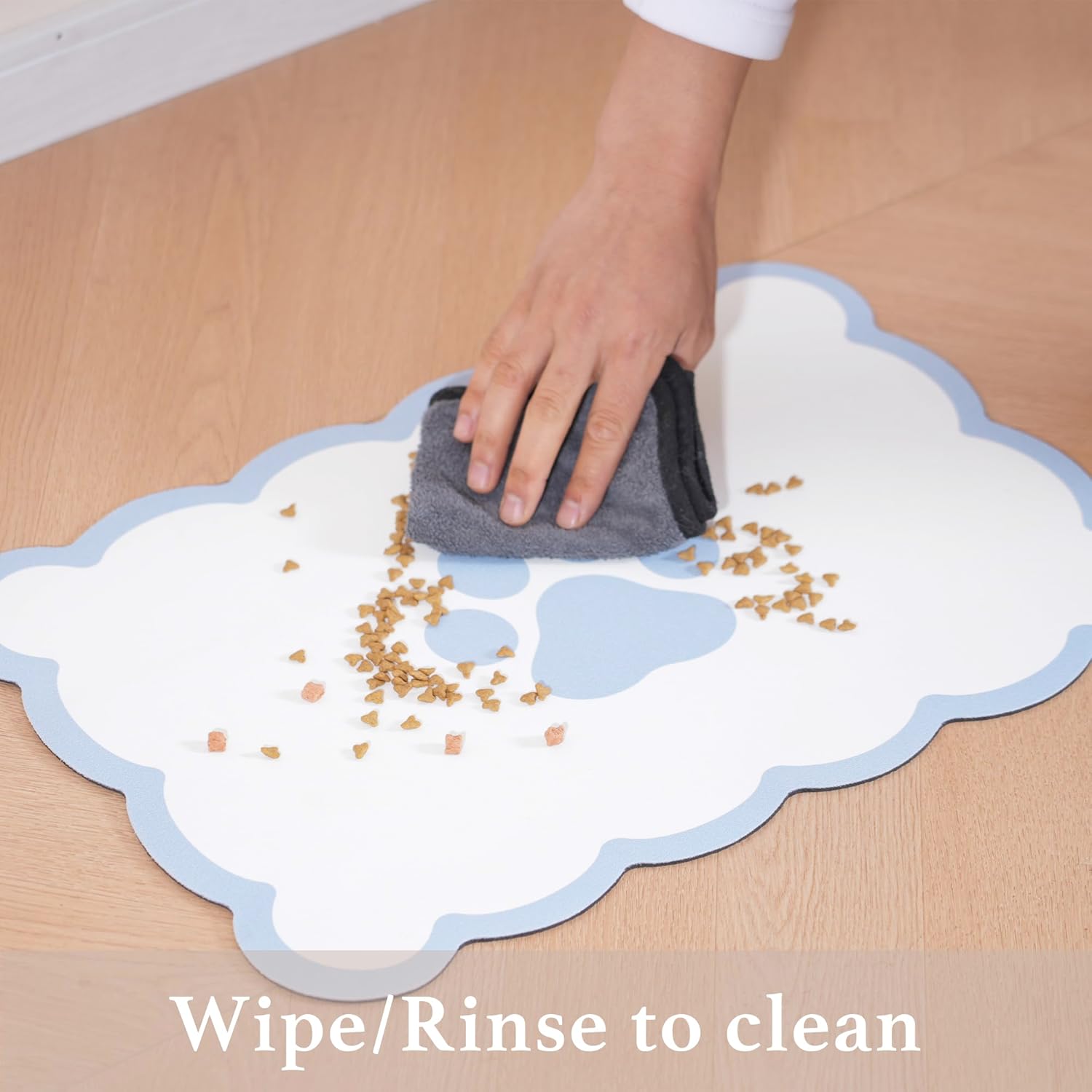 - Scalloped Design: This pet mat adds a stylish touch to your room. Its cute design and modern aesthetic effortlessly enhance the overall look of your space. Whether you place it in the kitchen, living room, or any other area, it adds a decorative element while fulfilling its intended purpose.