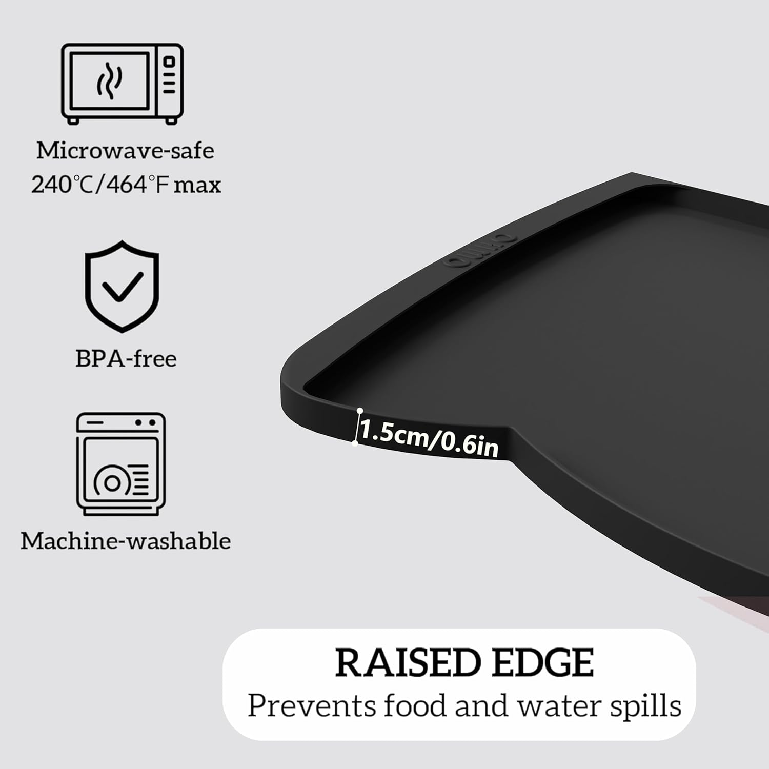 OHMO Dog Food Mat(Black, 24 * 15'') w/Residue Collection Pocket Silicone Pet Feeding Mat for Floor High Edges Anti Spills Waterproof Cat Water Bowl Tray, Easy Clean Placemat