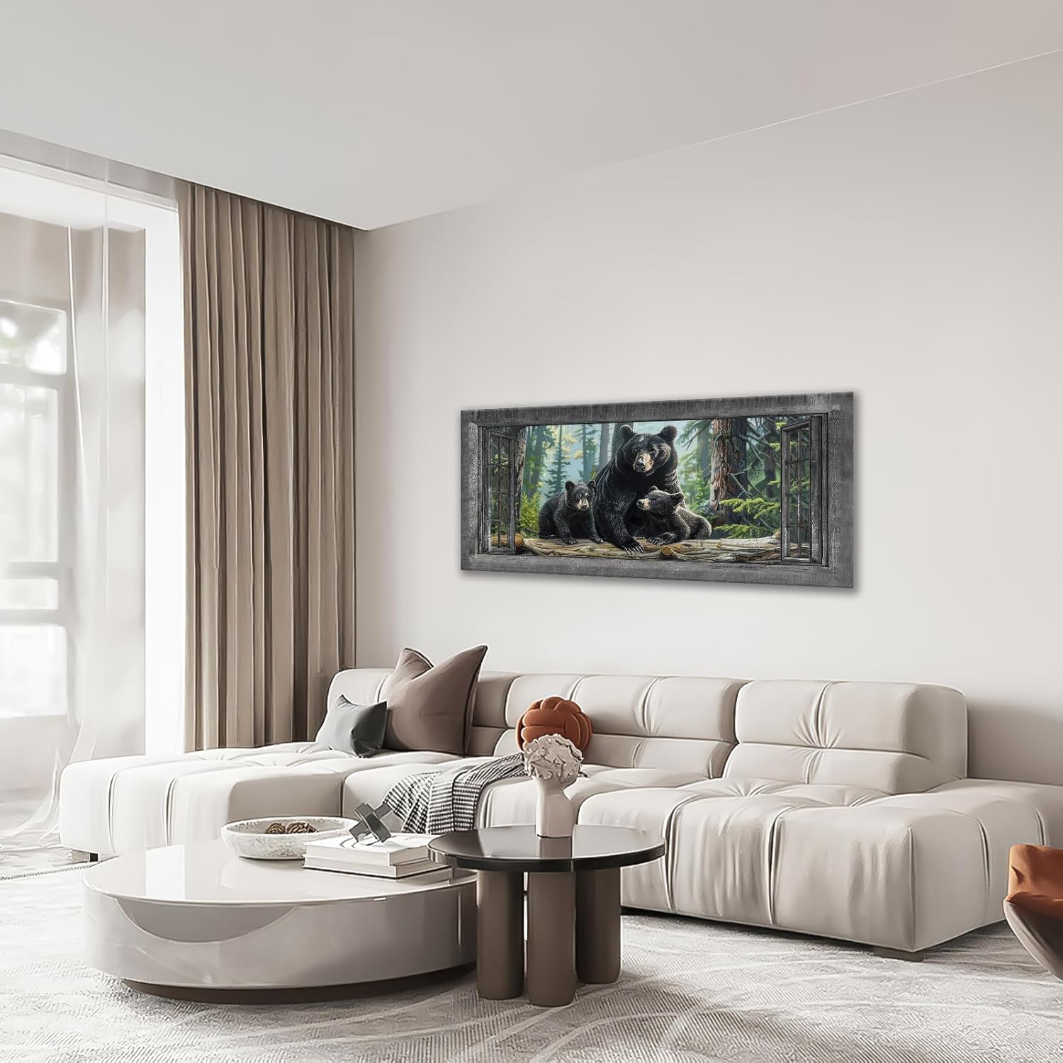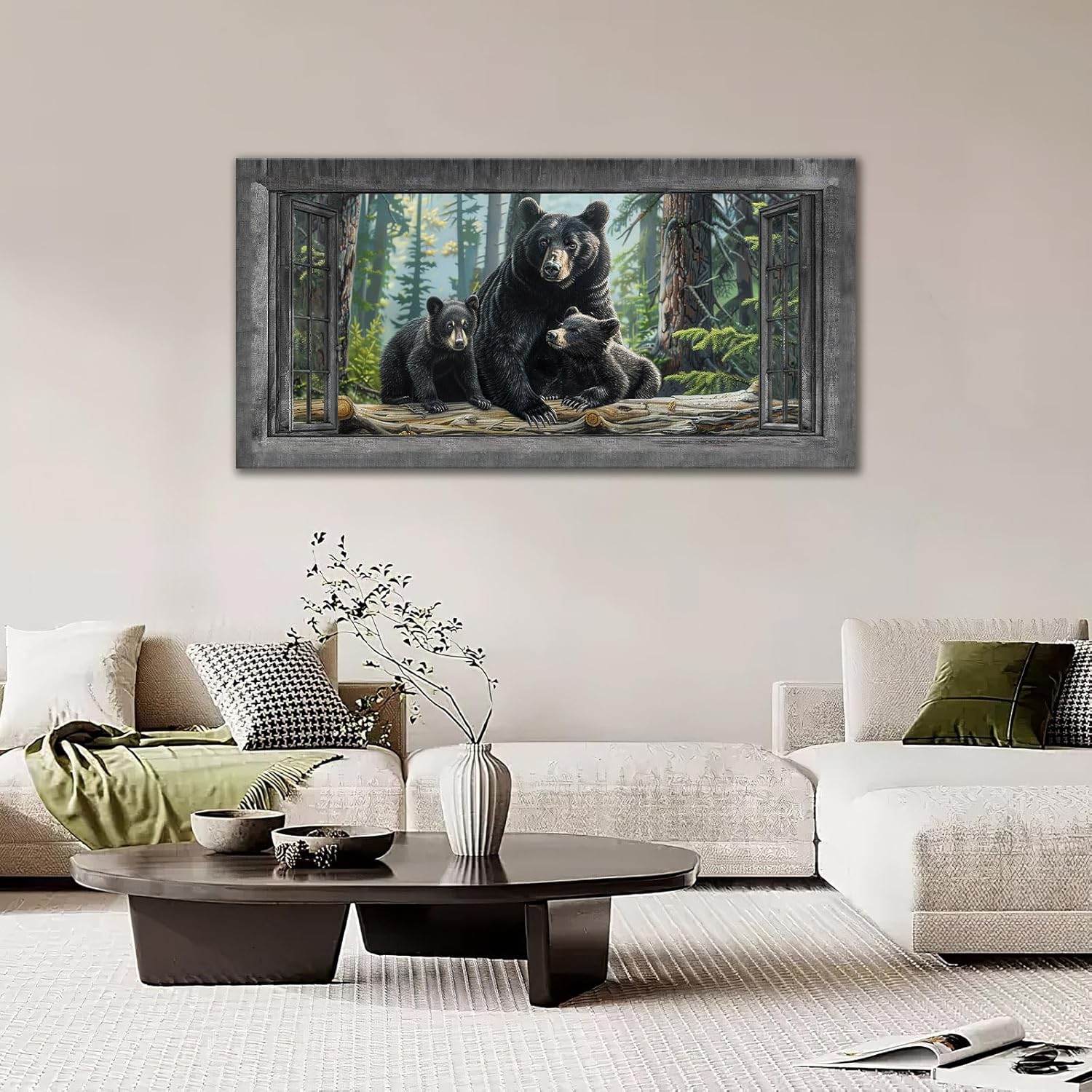 Large Wall Art Black Bear Canvas Cabin Living Room Pictures Prints Forest Oversize Wall Decor Animal Painting Artwork for Bedroom Dining Office Home 60"x30"