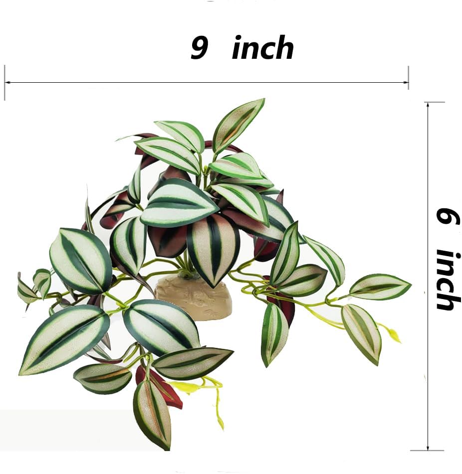 Reptile Plants for Terrarium Decor,Amphibian Habitat Decor, Bearded Dragon Tank Accessories,Artificial Plants for Gecko Chameleon Snake Tortoise with Base (Zebrina)