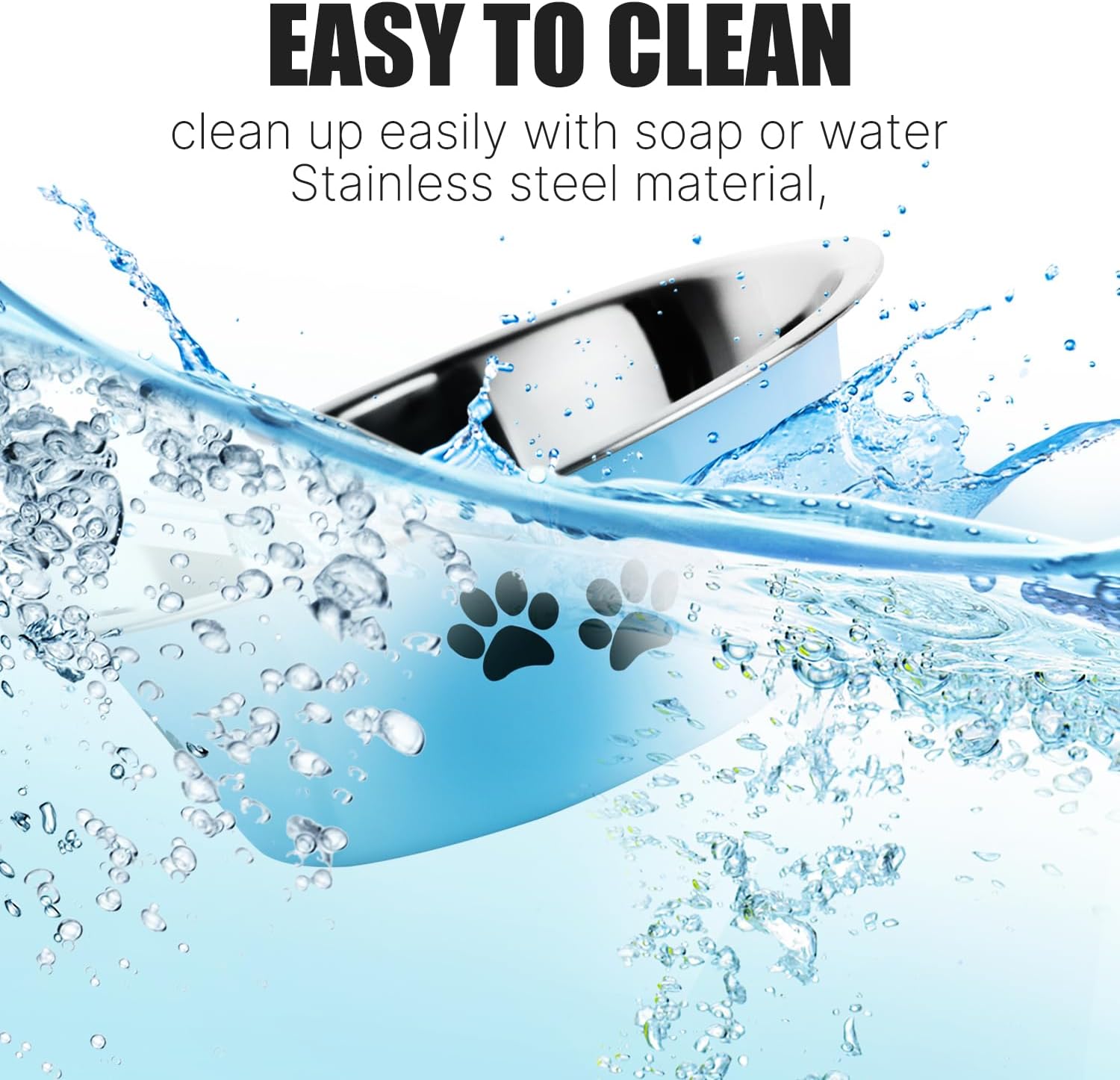 - πππ-ππππ: Stainless Steel Pet Bowl with Silicone chassis - Keep Mealtime Mess-free and quietοΌThe cleverly designed foot mat prevents the bowl from scratching the floor, making it suitable for use on various types of flooring.