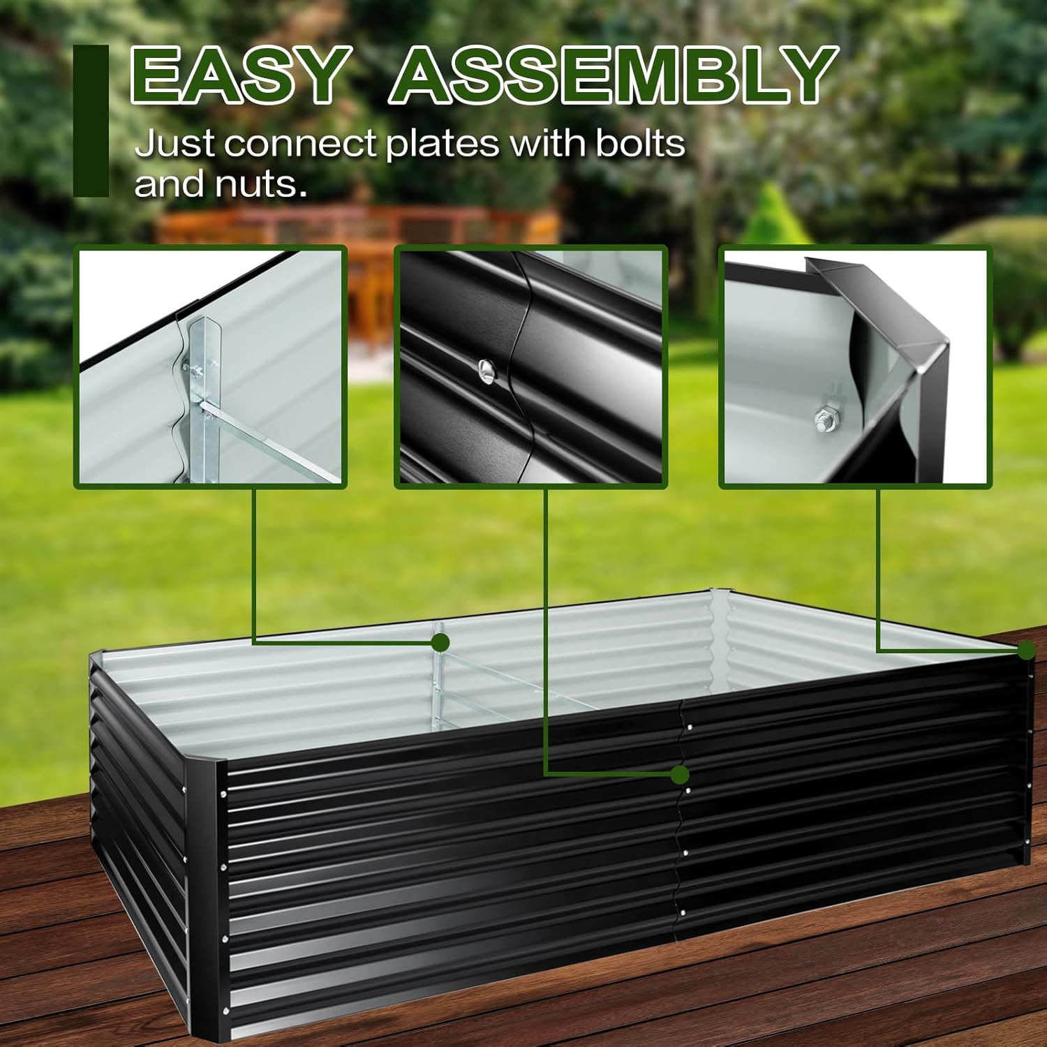 - Easy to install:This raised garden bed is designed in a simple but stable structure, which is very easy and quick to put together. Necessary hardware and instruction are included.